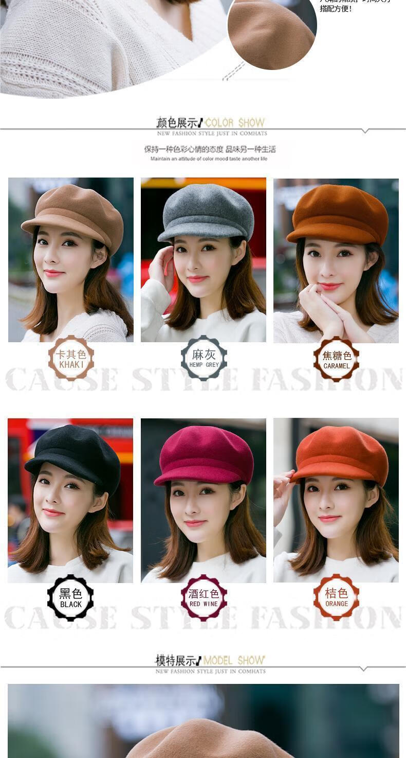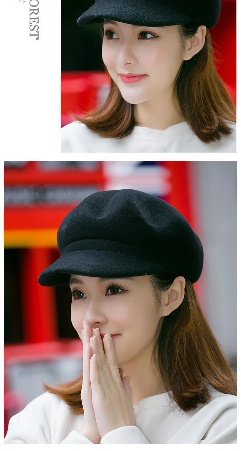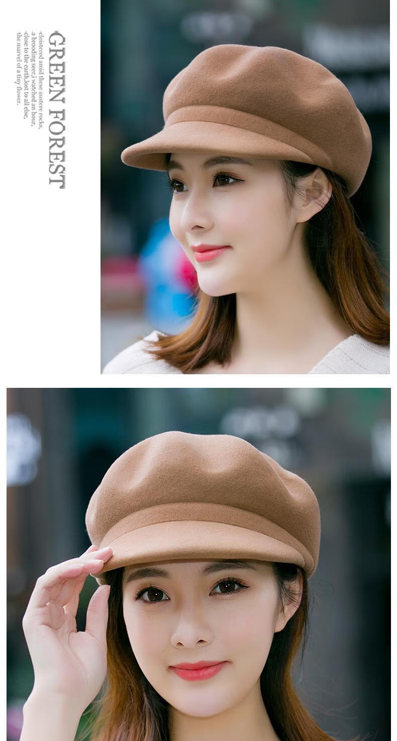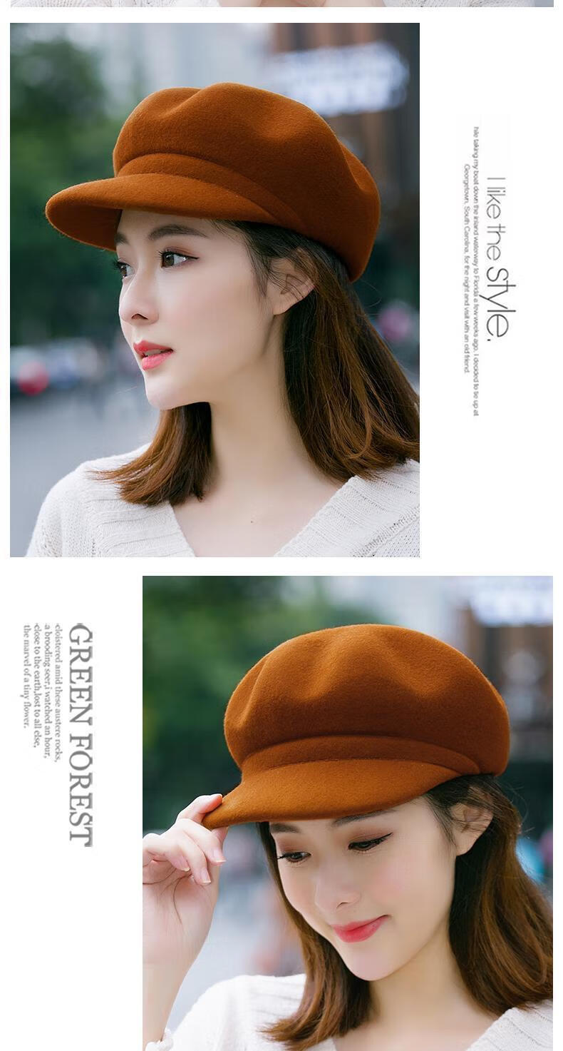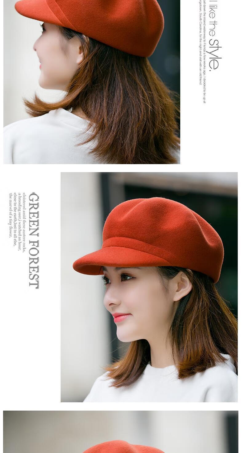 Xishengduo hat women's autumn and winter high-end octagonal hat women's fashion internet celebrity hat winter woolen beret burgundy