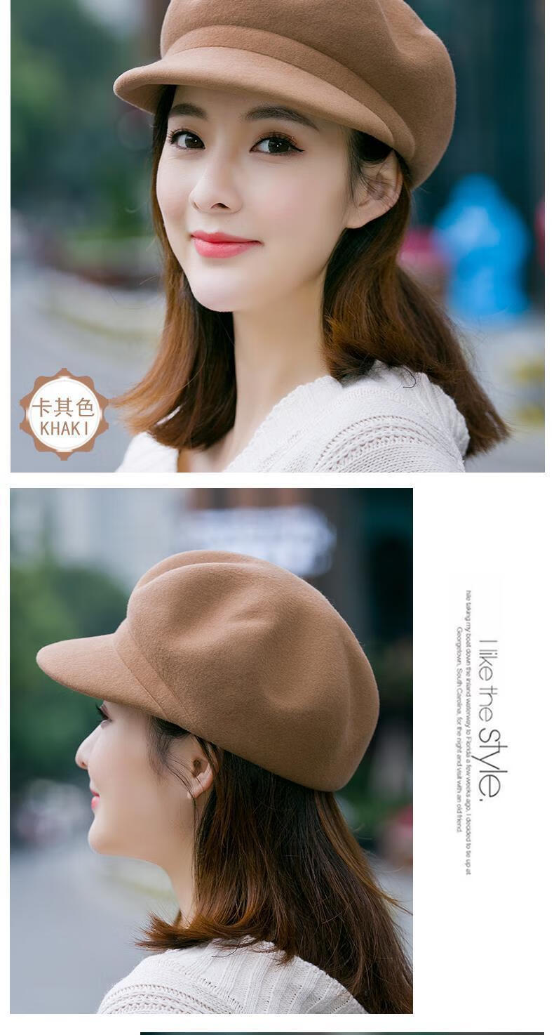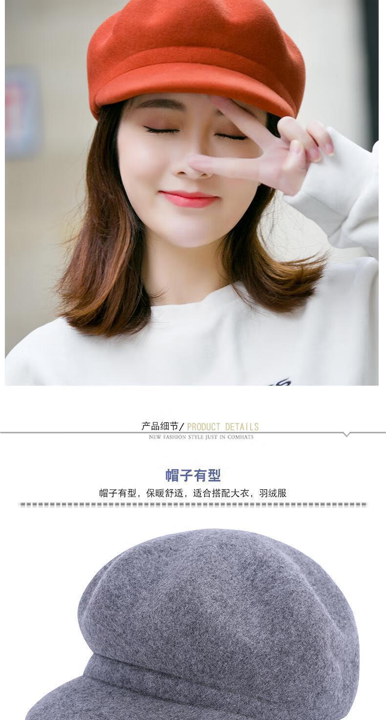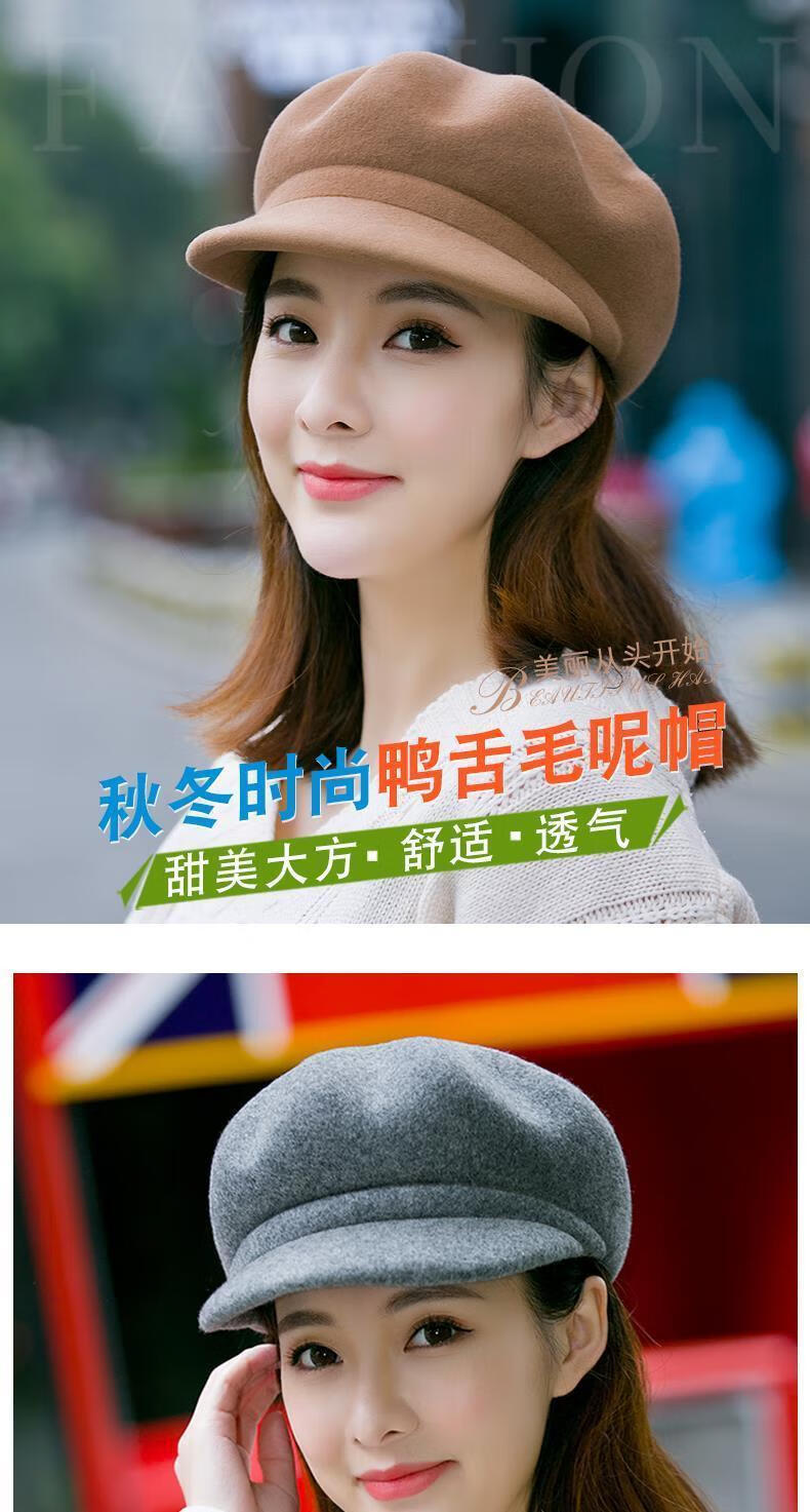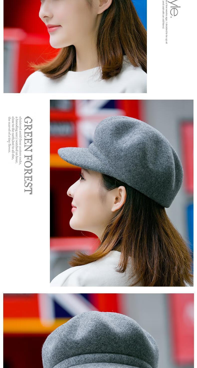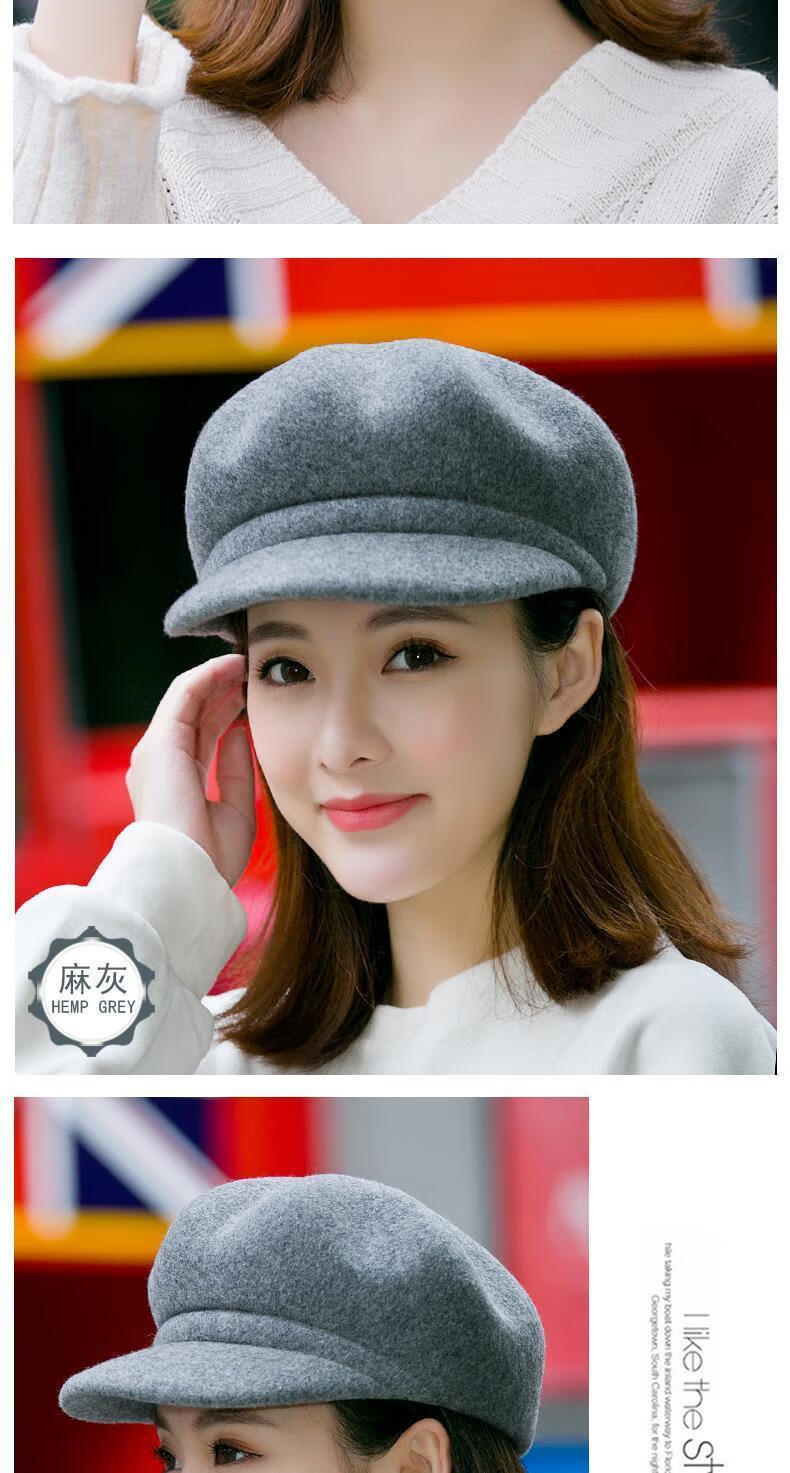 Xishengduo hat women's autumn and winter high-end octagonal hat women's fashion internet celebrity hat winter woolen beret burgundy