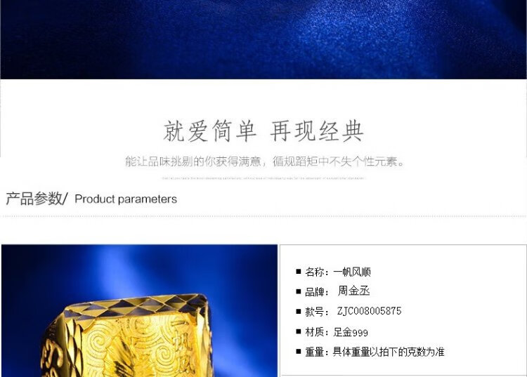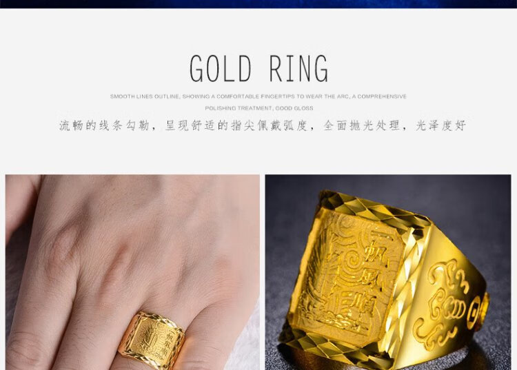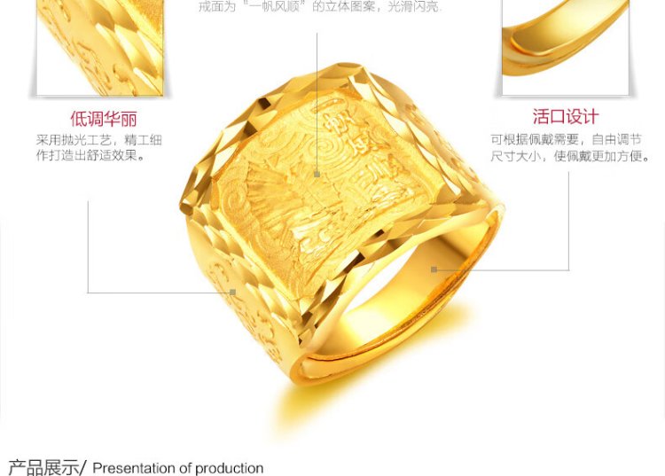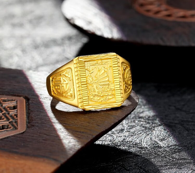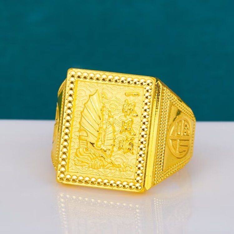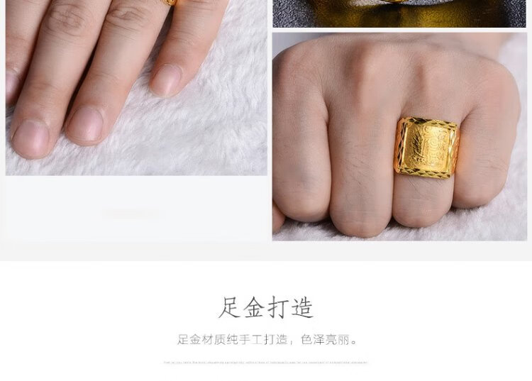 Zhou Jincheng gold ring men's 999 pure gold boutique luxury smooth sailing gold ring boss ring men's ring gold weight 12.86g