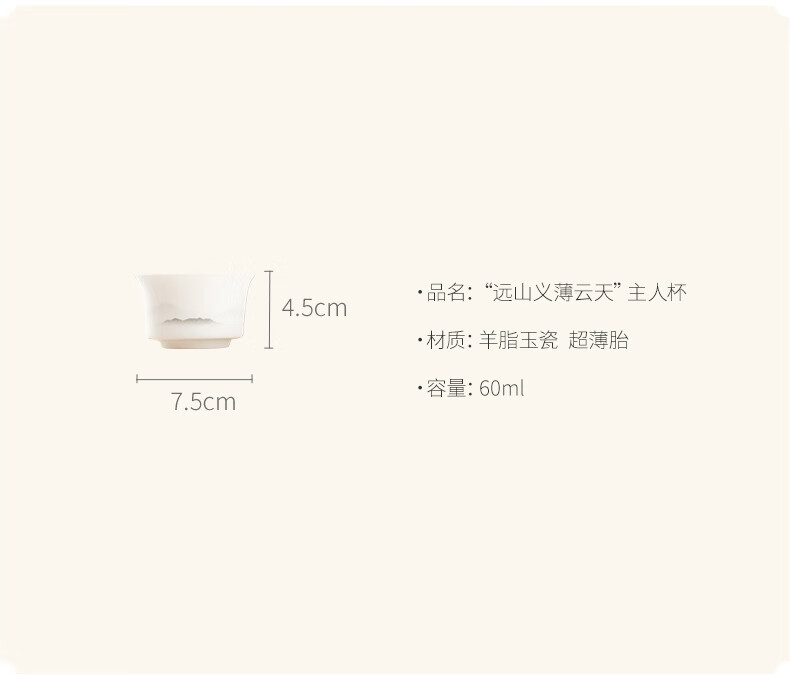 Yueji Kiln Yuanshan Yibo Yuntian mutton fat jade porcelain ultra-thin master cup 60ml (7 points)