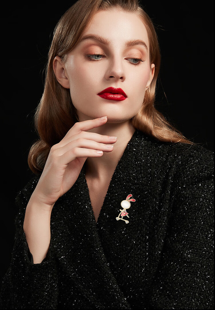 Strong Silver Japanese Zodiac Rabbit Brooch Women's Design Suit Pin Corsage Anti-Light Buckle Brand Scooter Rabbit Brooch