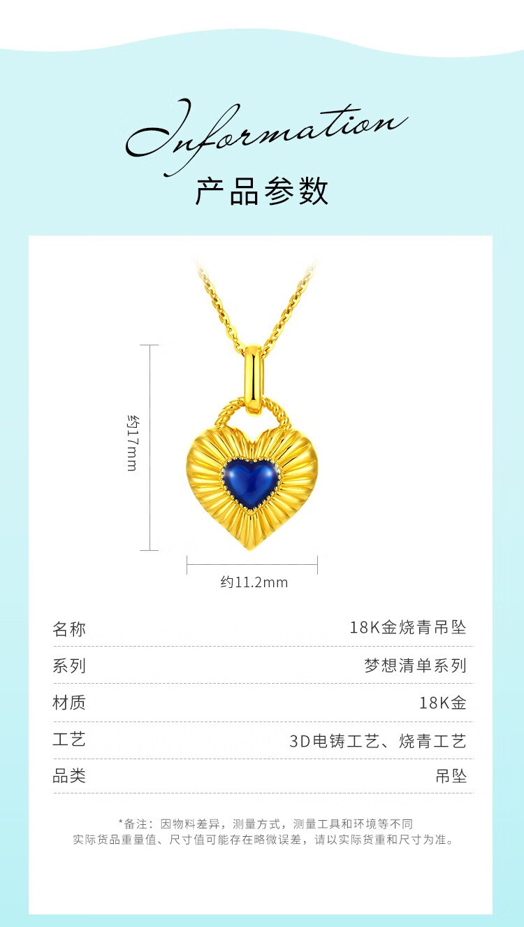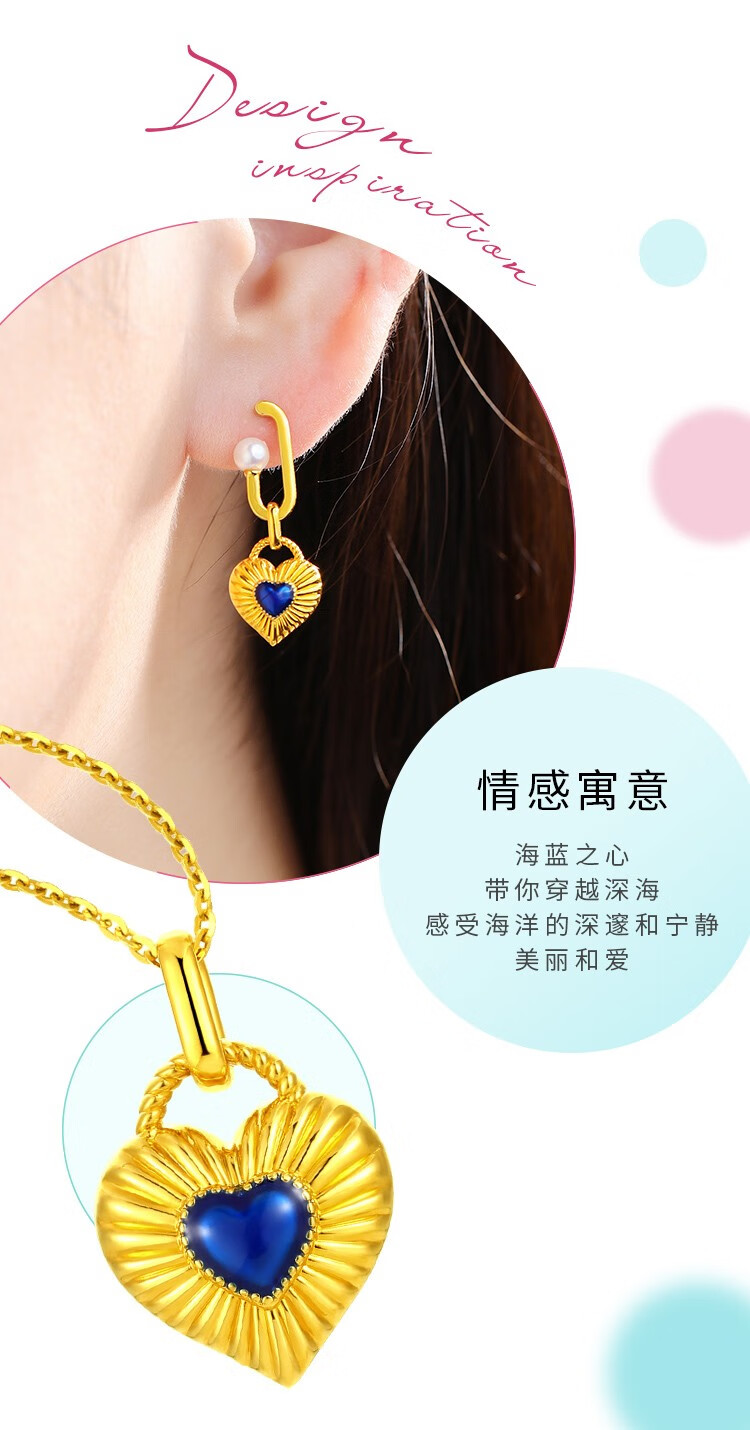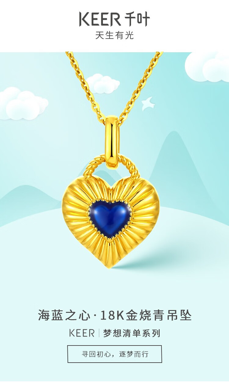 Chiba Jewelry 18k gold pendant Ocean Blue Heart - Small Shaoqing craftsmanship fashionable and simple new style for girlfriend birthday gift 18k gold pendant