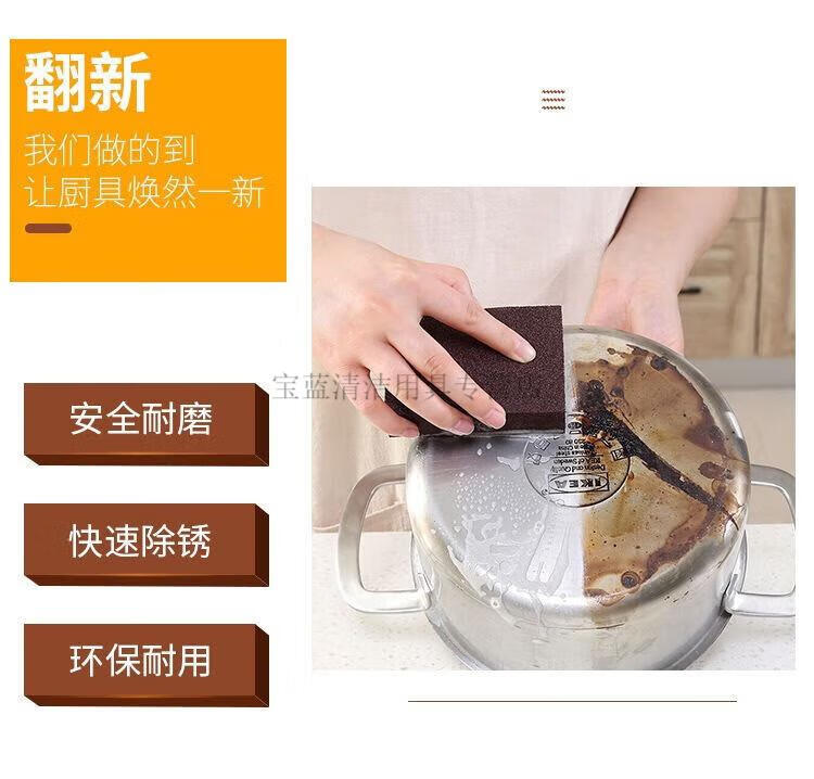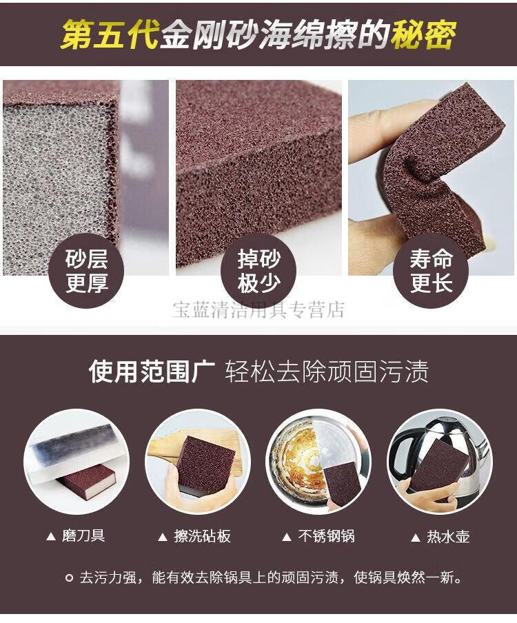 Bei Jingjie Emery Sponge Magic Wipe Kitchen Pot Washing Dishwashing Cleaner Decontamination Wash Pot Bottom Black Dirt Rust Remover Pot Brush Magic 5-piece Diamond Wipe