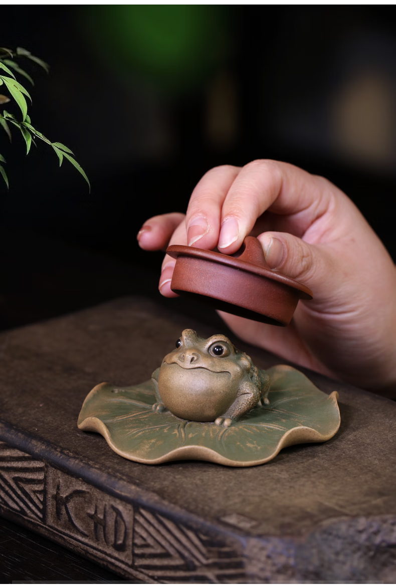 Hidden Pot Tianxia Zisha Tea Pet Ornaments Boutique Can Raise Tea Table Tea Table Ornaments Tea Set Accessories Lotus Leaf Incense Tea Play Golden Toad Cover Set Harmony Produces Wealth