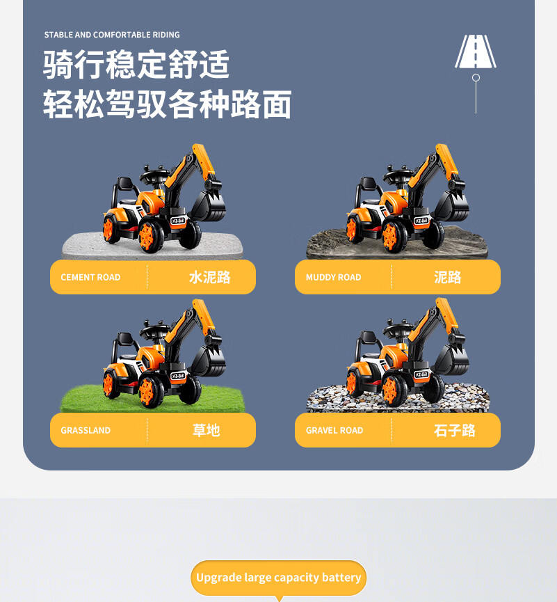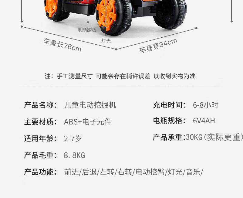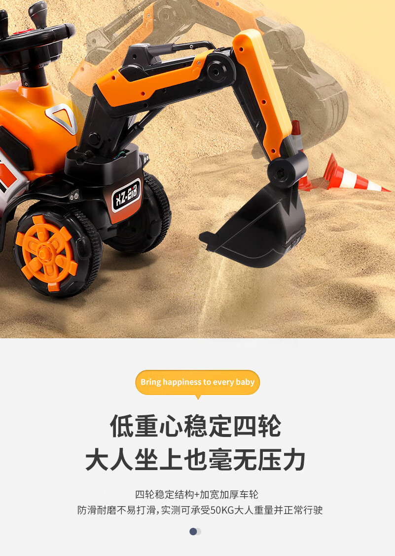 LIVING STONES children's electric car 1-6 years old remote control car can sit on an adult excavator and can dig soil 2-9 years old children's electric car all-electric large battery + electric digging arm + music light children's toy car 1-3 years old children's electric car