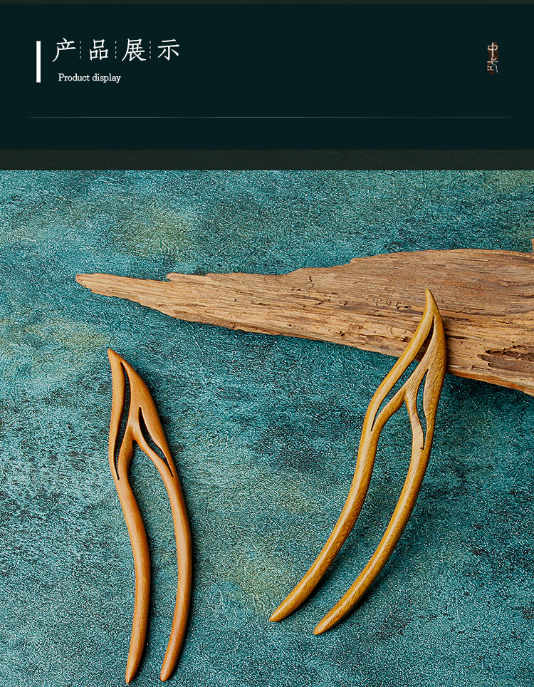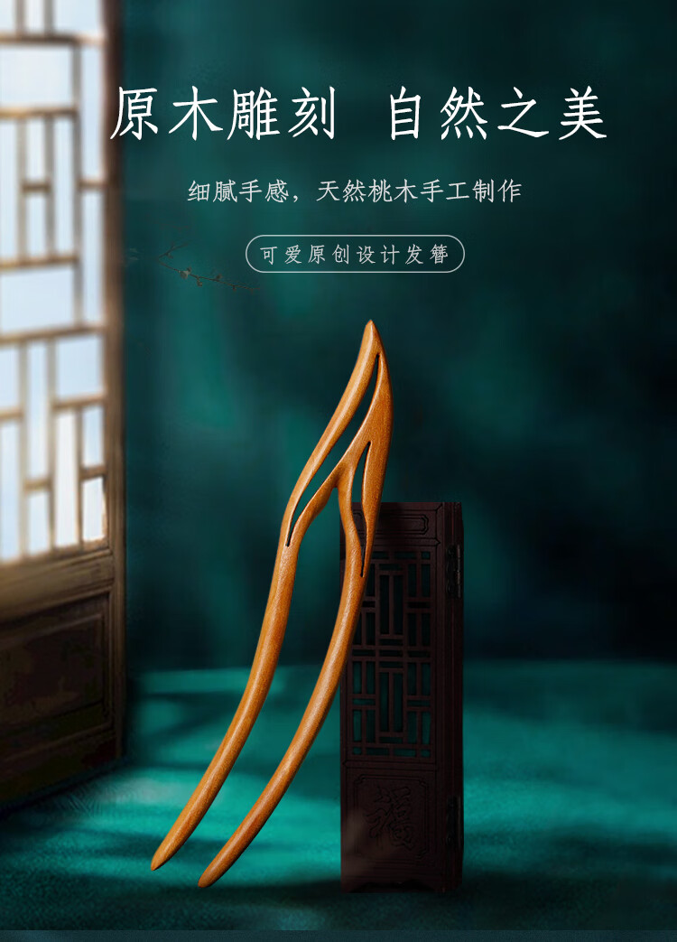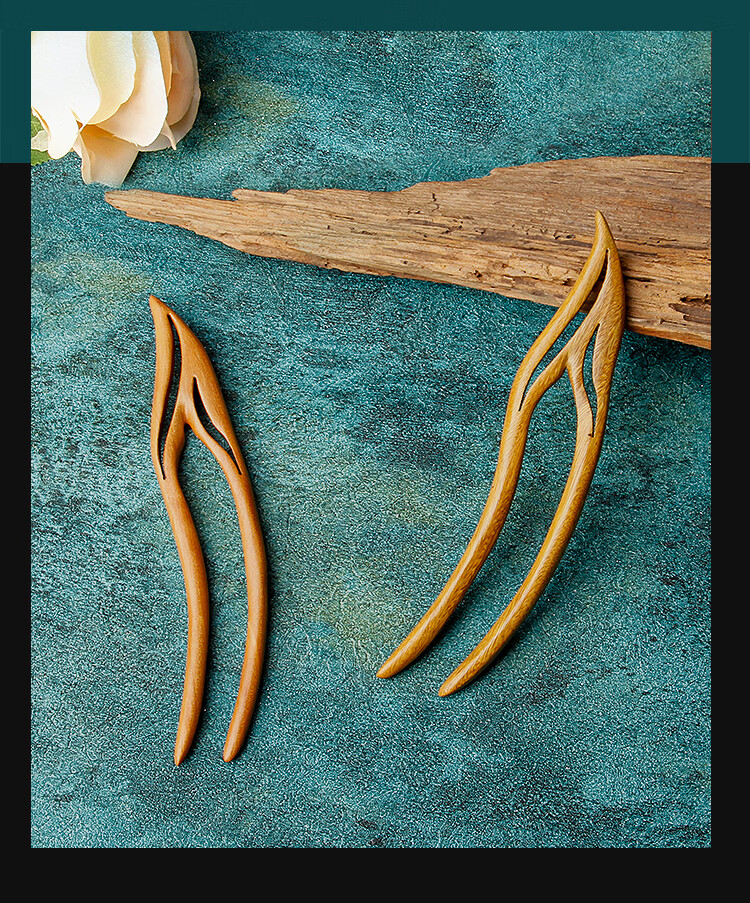 Beautiful wood U-shaped hairpin, peachwood and sandalwood hairpin, double hairpin, handmade ancient style hairpin, daily hairpin, peach wood edge double hairpin