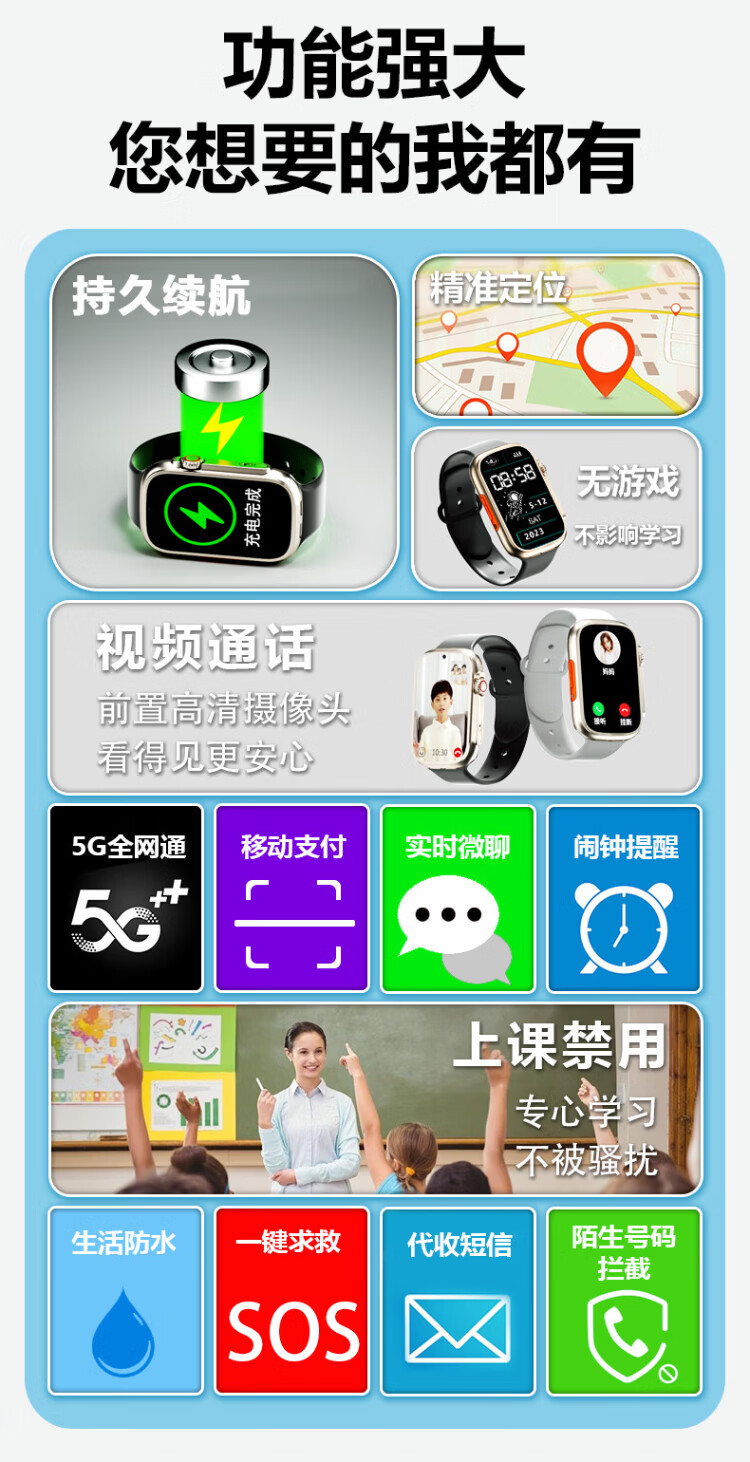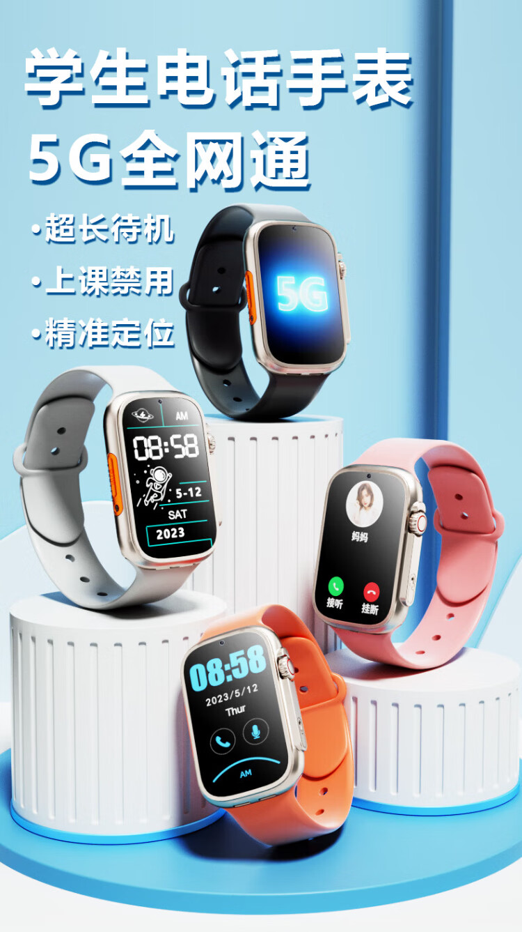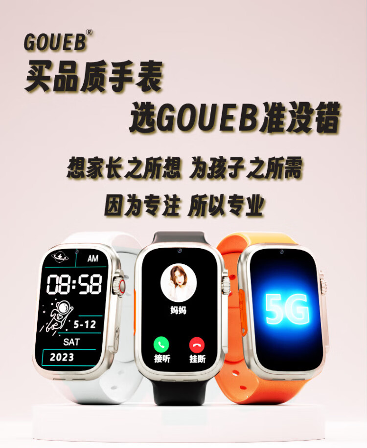 GOUEB children's phone watch middle school students 5G full Netcom teenagers junior high school students insert card positioning can make and receive calls independent calls high school smart no games long standby flagship black (charging compartment + 5G full Netcom + scan code payment + precise positioning +
