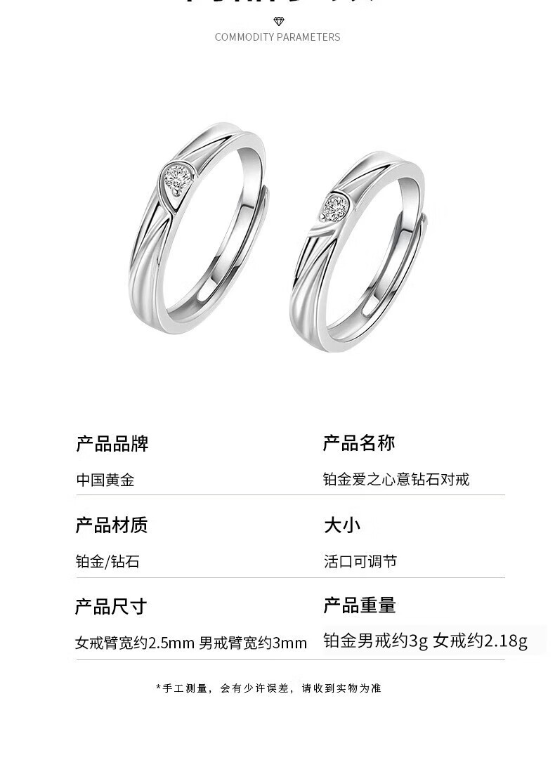 China Gold (CHINA GOLD) Platinum Platinum Diamond Ring Couple looking for wedding diamond ring birthday gift for girlfriend and wife wedding anniversary real platinum diamond sweetheart ring + engraving