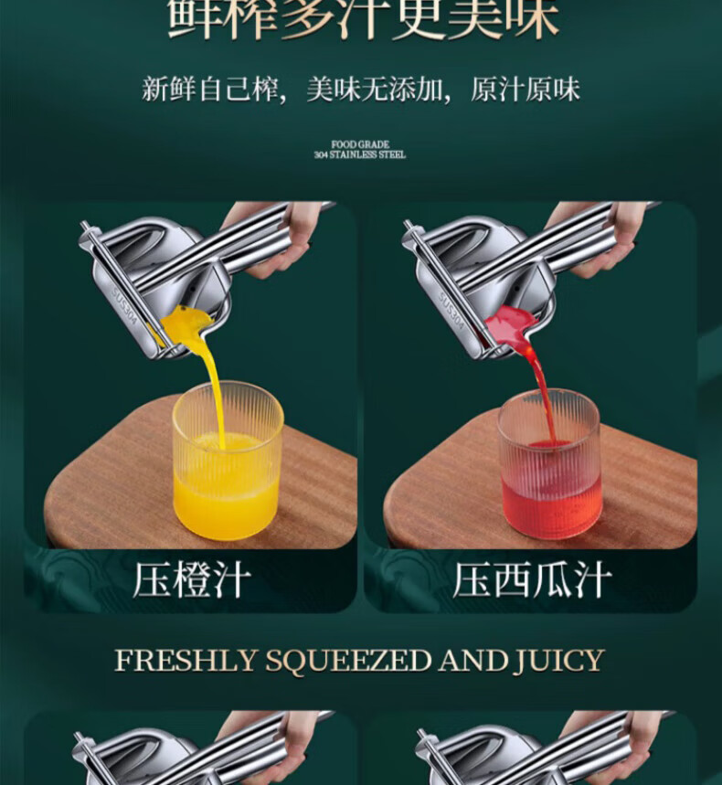 Baijie manual juicer 304 stainless steel juicer manual juicer lemon juicer squeeze juice squeezer 304 stainless steel quality selection highly recommended five-star good product recommendation