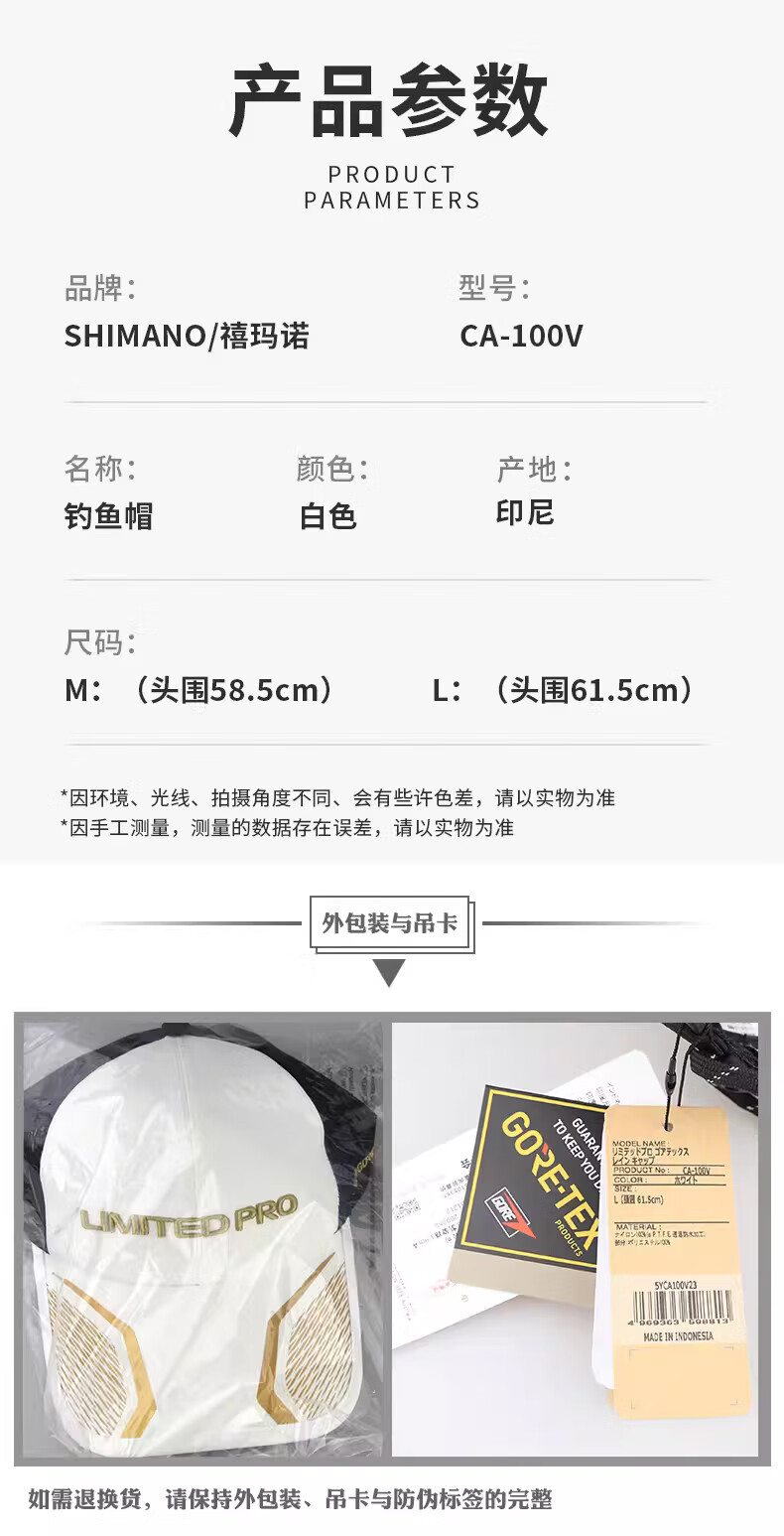 SHIMANO New CA-100V Sports Outdoor Hat Waterproof Breathable Casual Fishing Hat White M