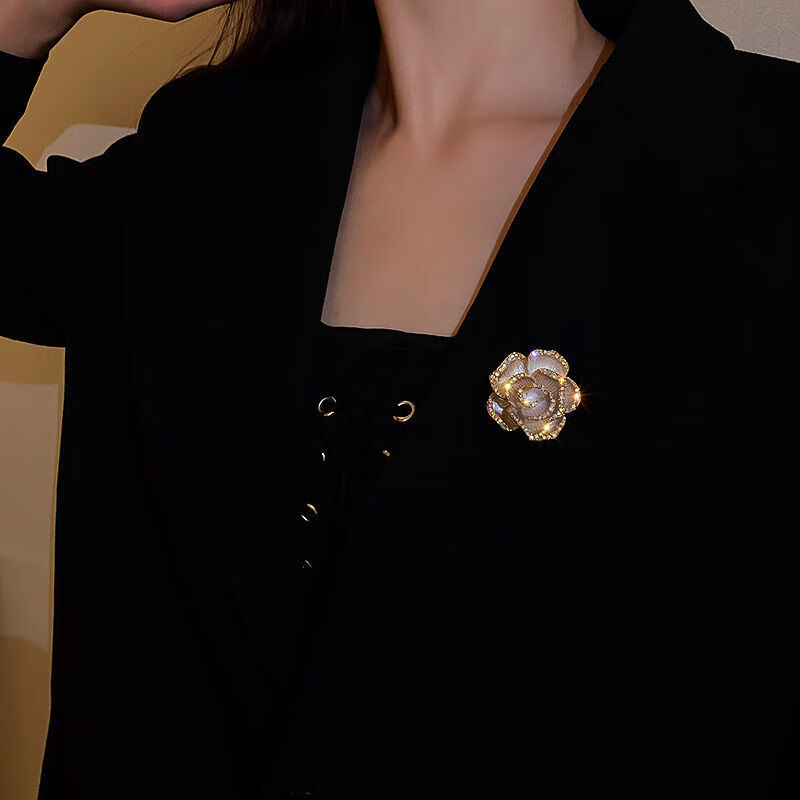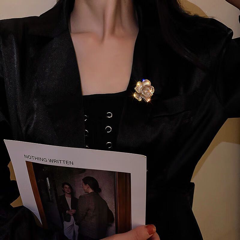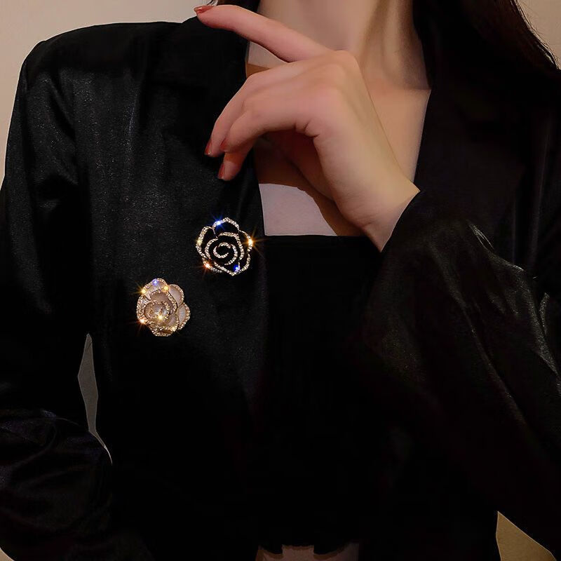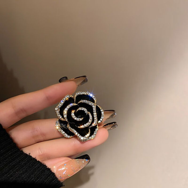 Stanwyck Camellia Brooch Women's Exquisite Niche Design New Trendy High-end Suit Pin Accessory B Style Black