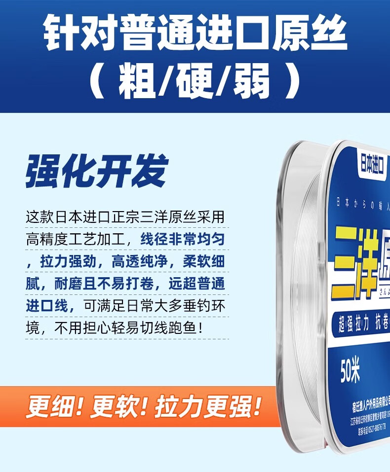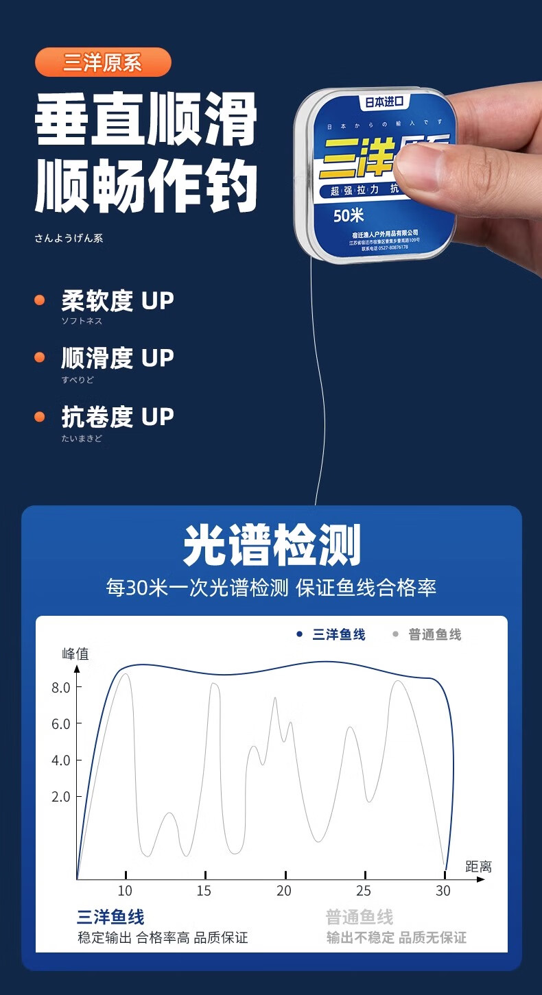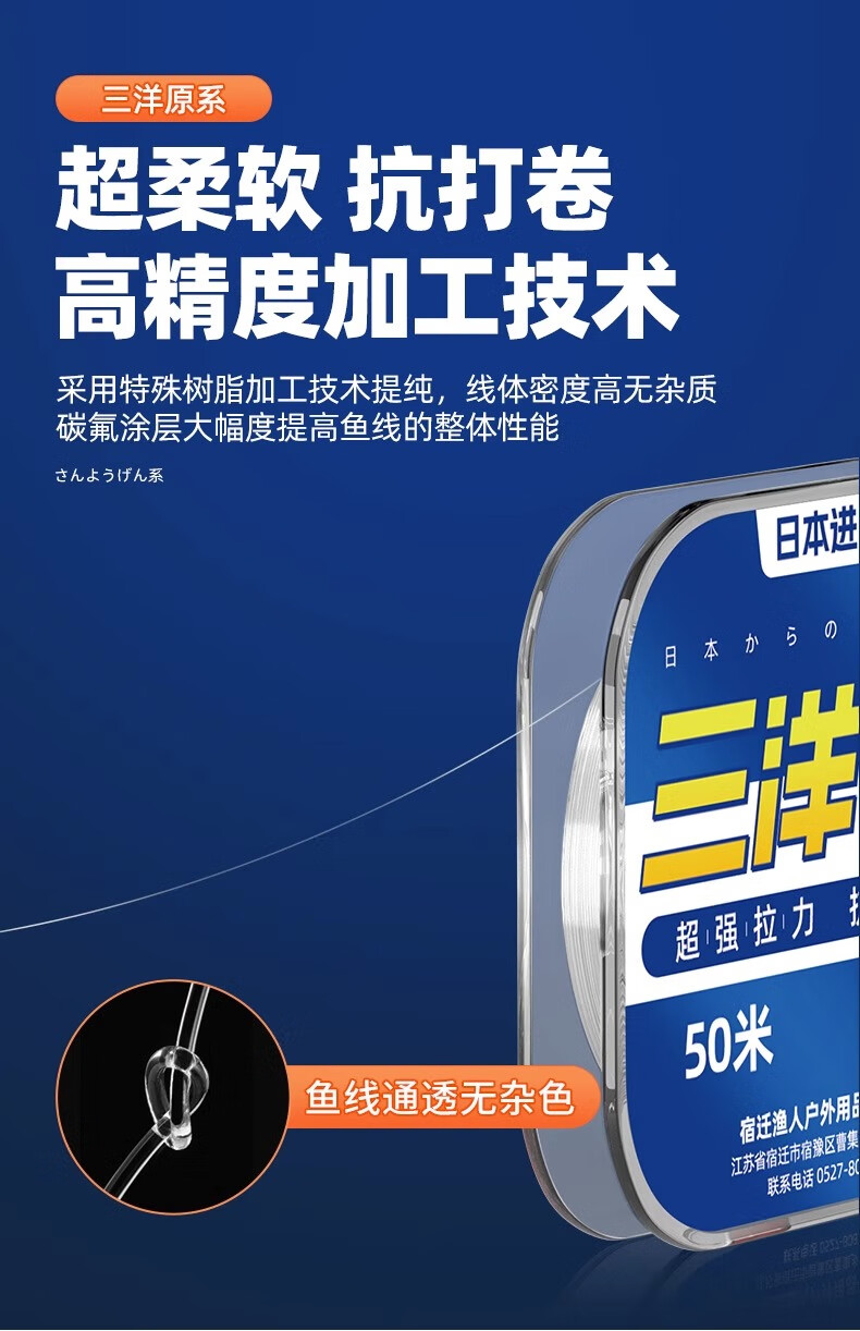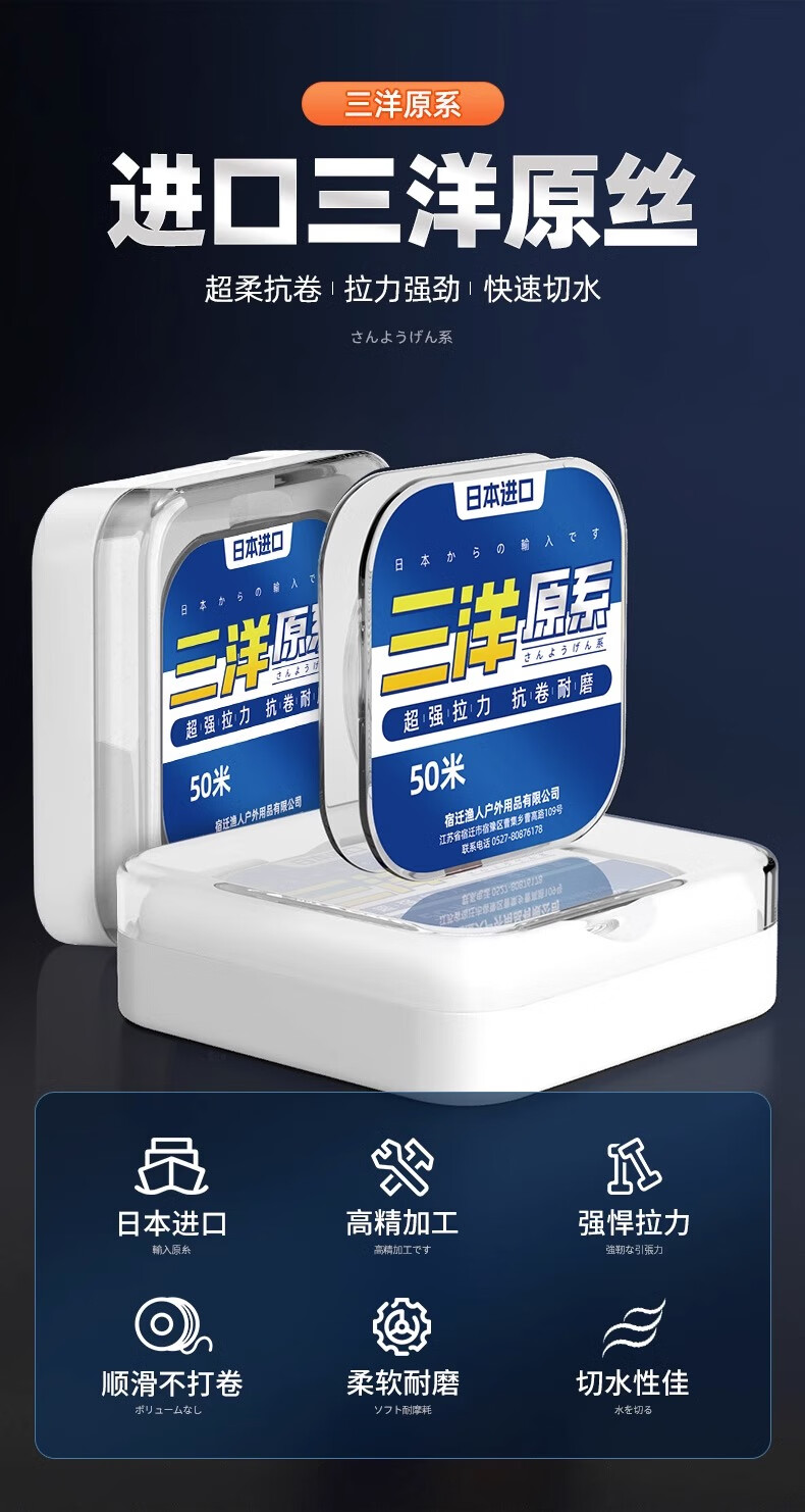 YNKOO high-end Japanese imported Sanyo fishing line main line sub-line super tensile strength high-strength fishing line nylon line crucian carp authentic Japanese Sanyo fishing line-Lake blue 50 meters No. 0.8