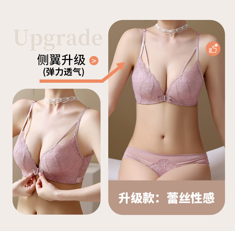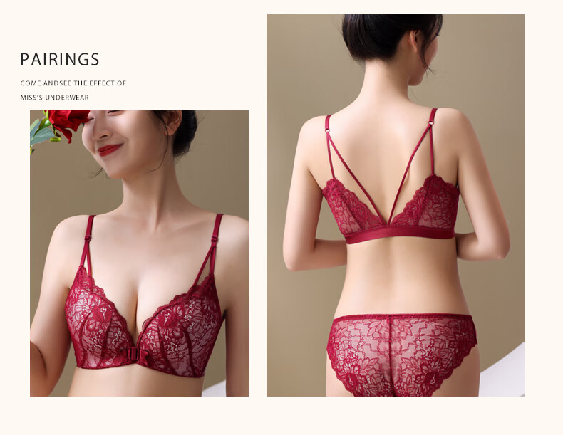 Adore Autumn and Summer Beautiful Back Underwear Summer Thin Women Small Breast Push Up Front Button Bra No Steel Ring Set Soft Support Burgundy Set 80/36A