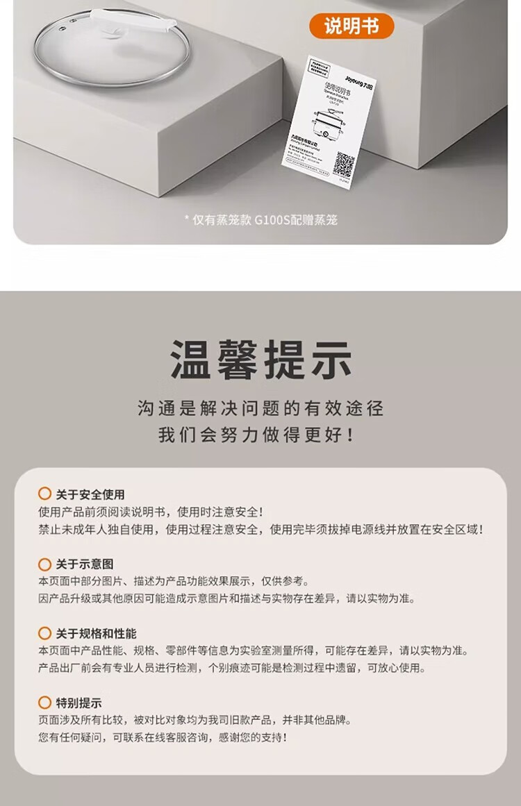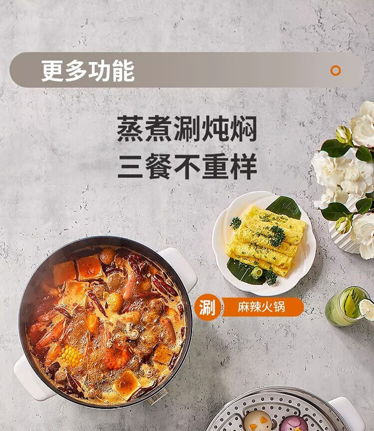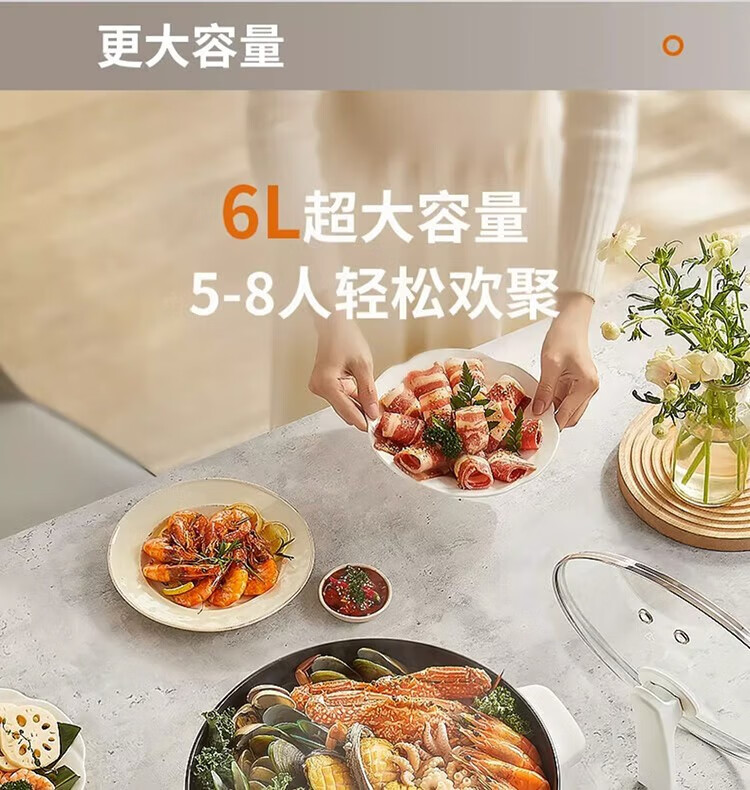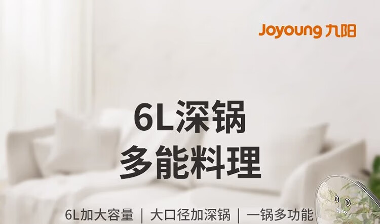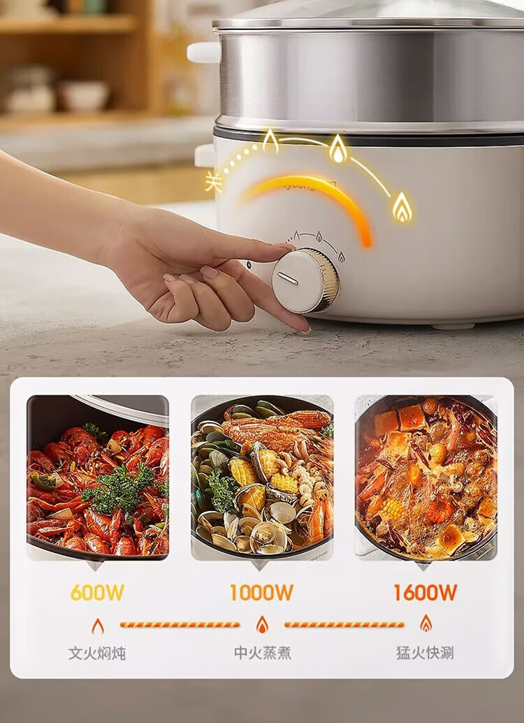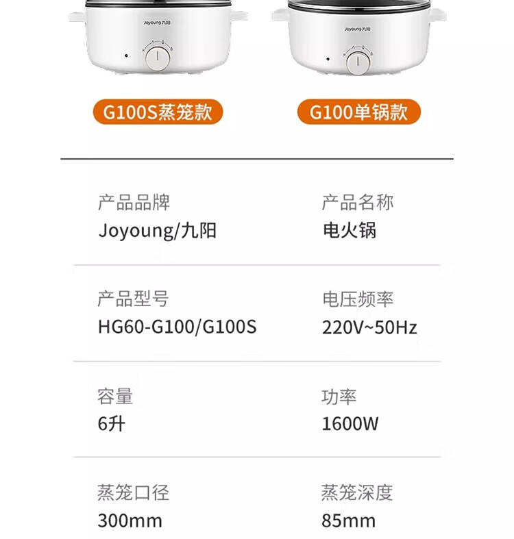 Joyoung electric cooker 6L large-capacity electric hot pot electric hot pot integrated steamer electric steamer dormitory small pot multi-functional small electric pot frying and shabu-shabu pot non-stick coating G100S