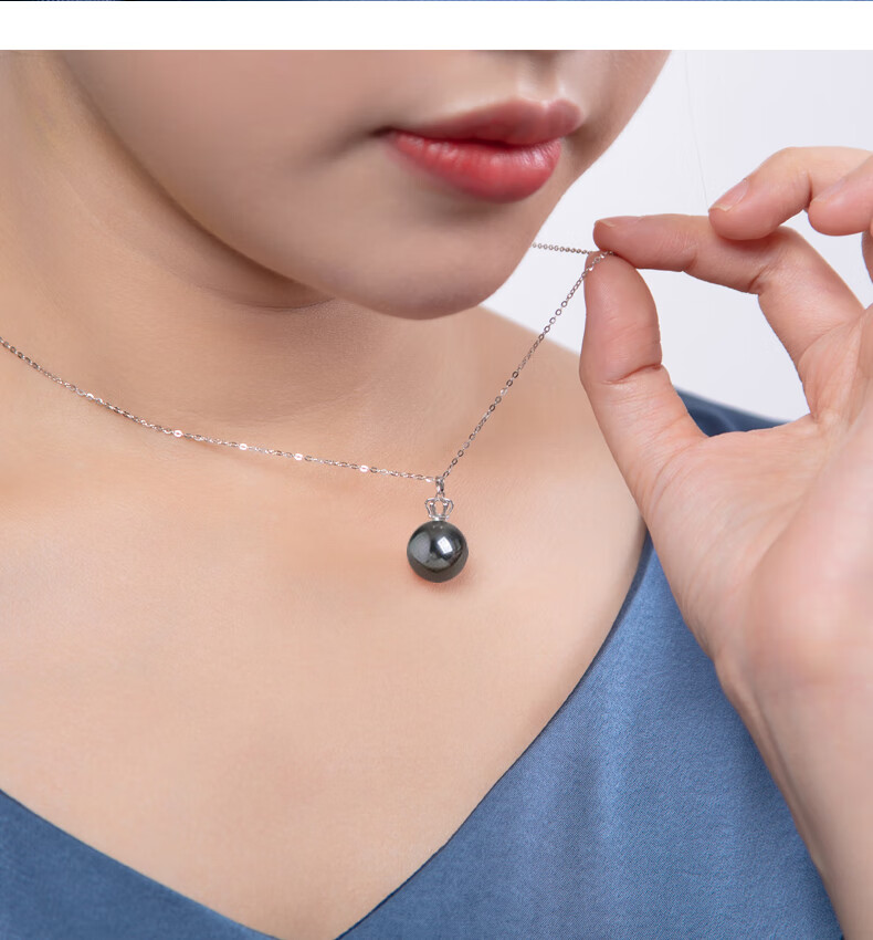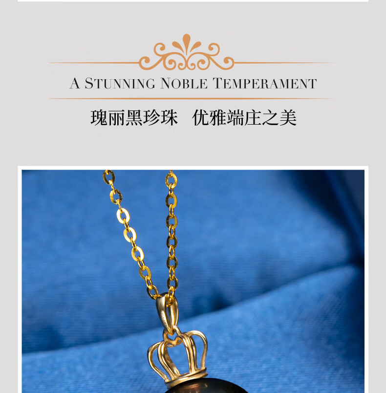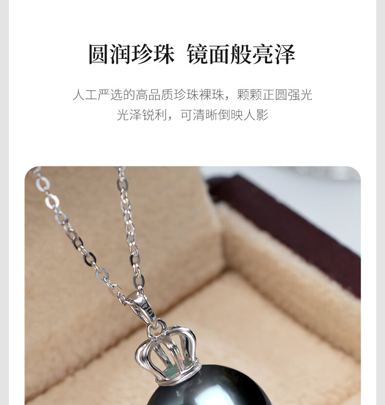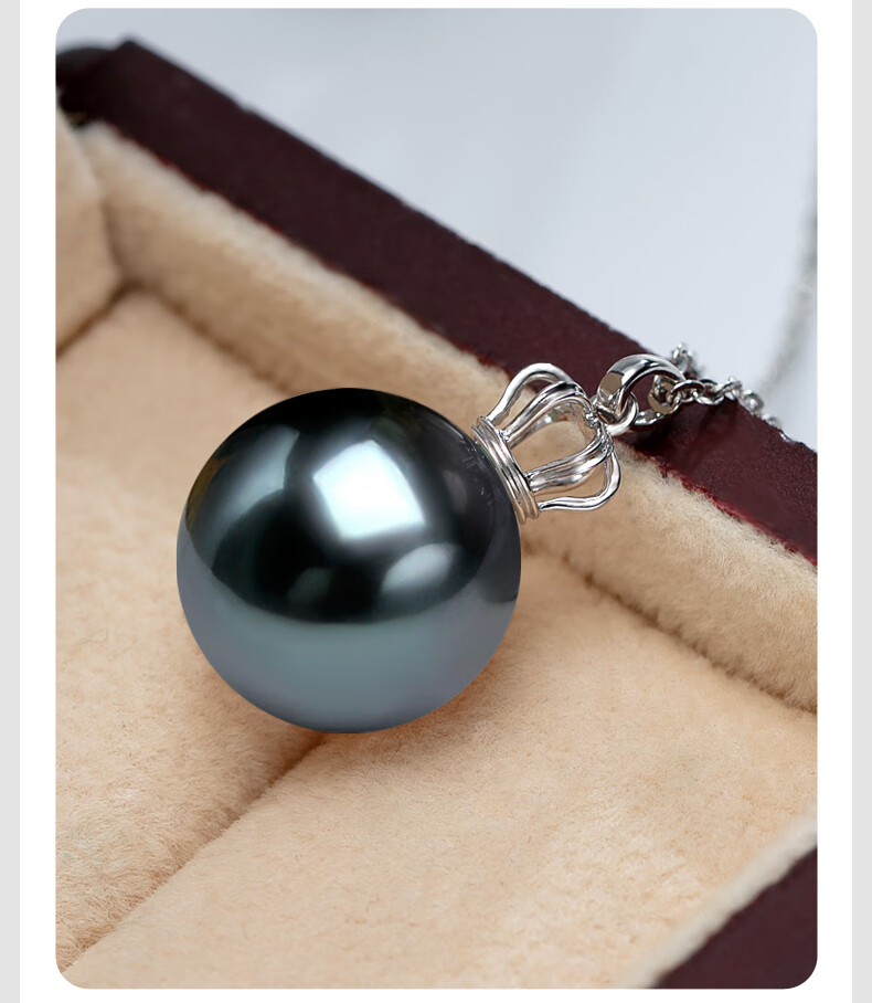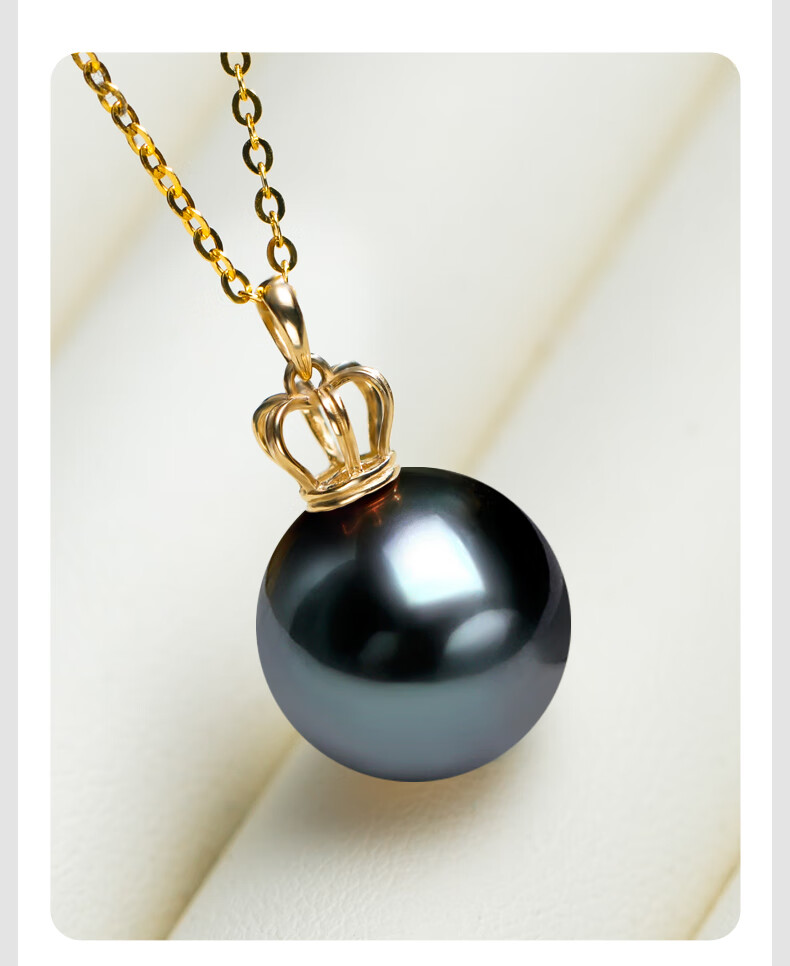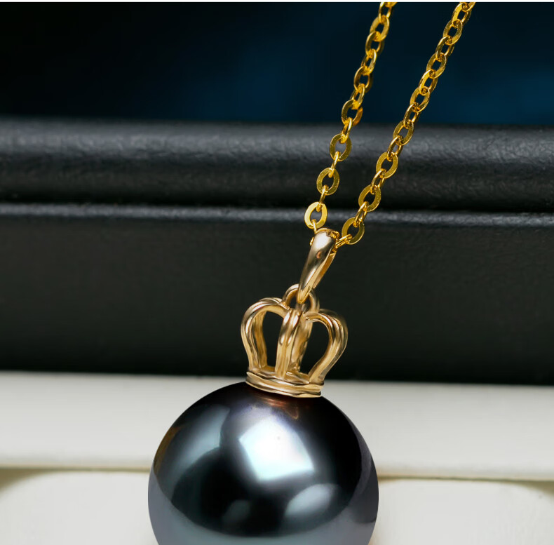 Nan Xi Tahitian Black Pearl Pendant Single 18K Gold Crown Black Seawater Pearl Necklace Birthday Gift for Girlfriend White 18k Gold Black Series 10-11mm Grade A/Slightly Flawed