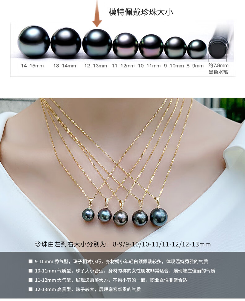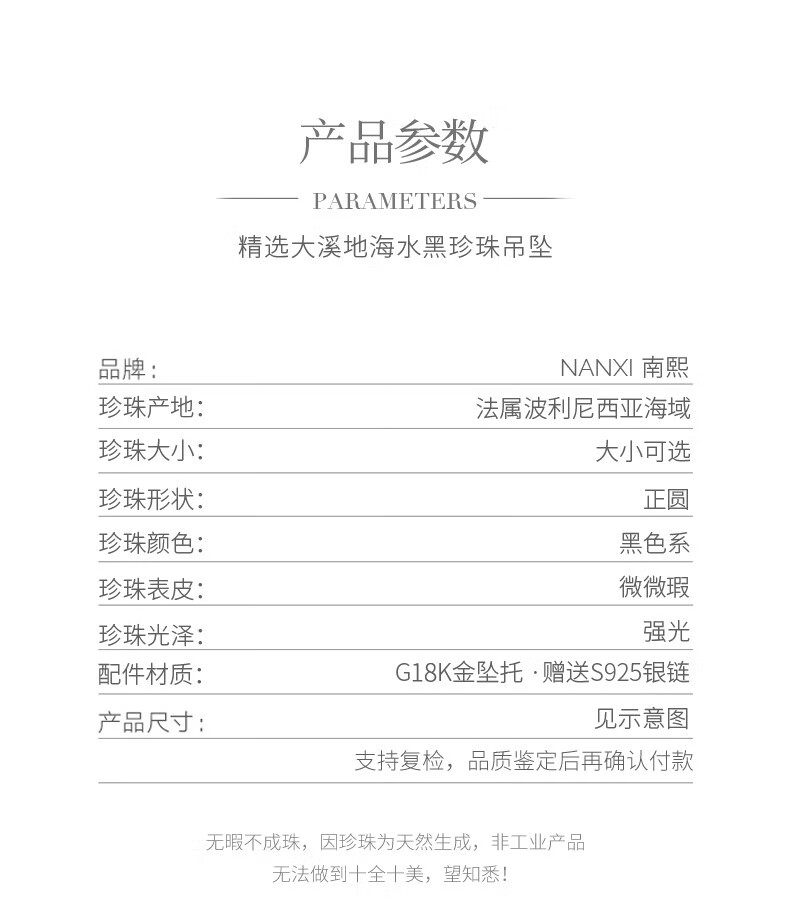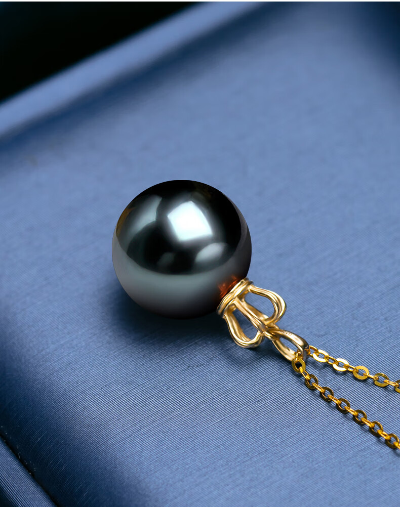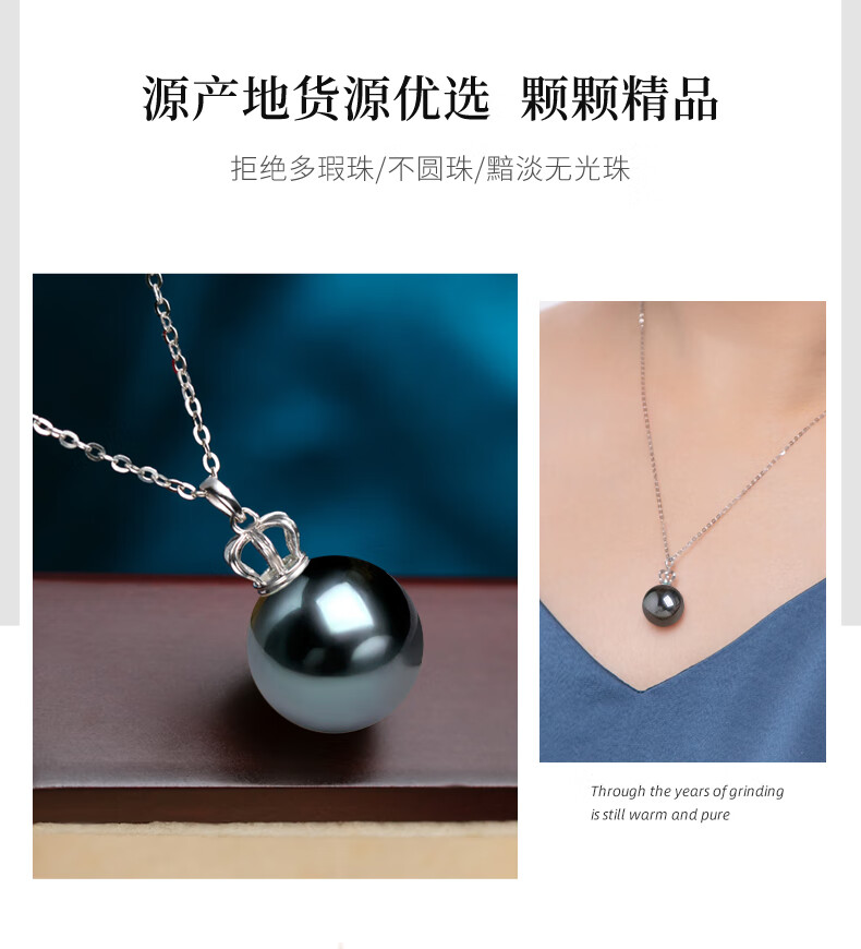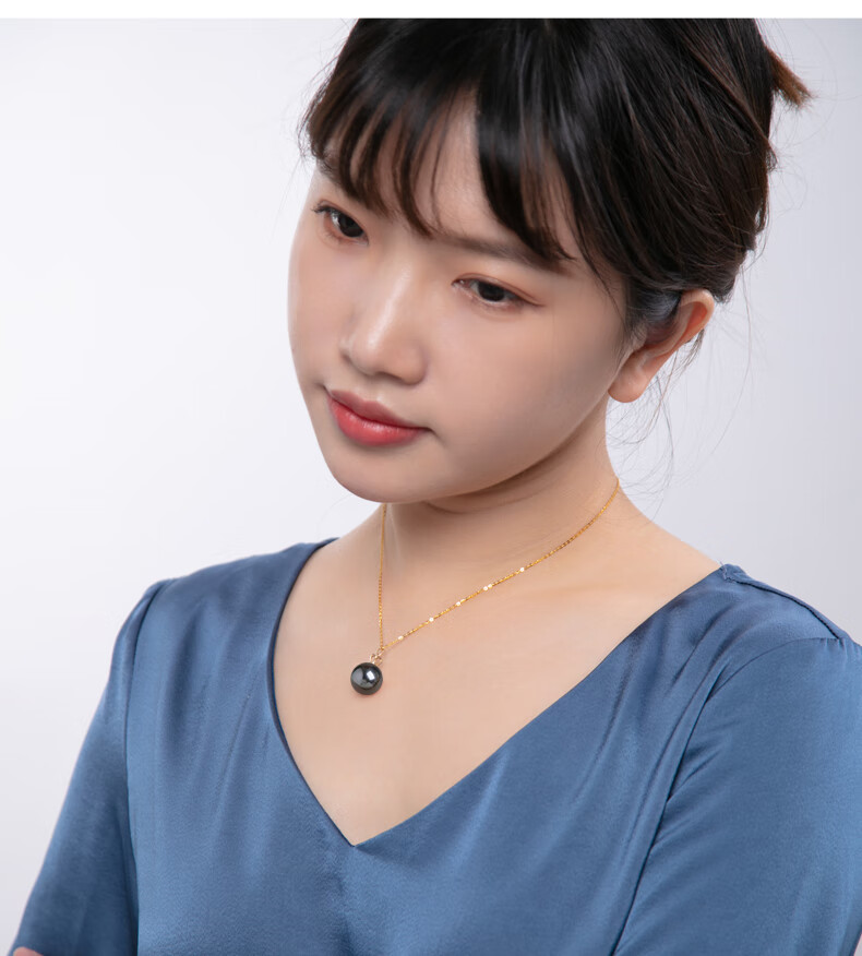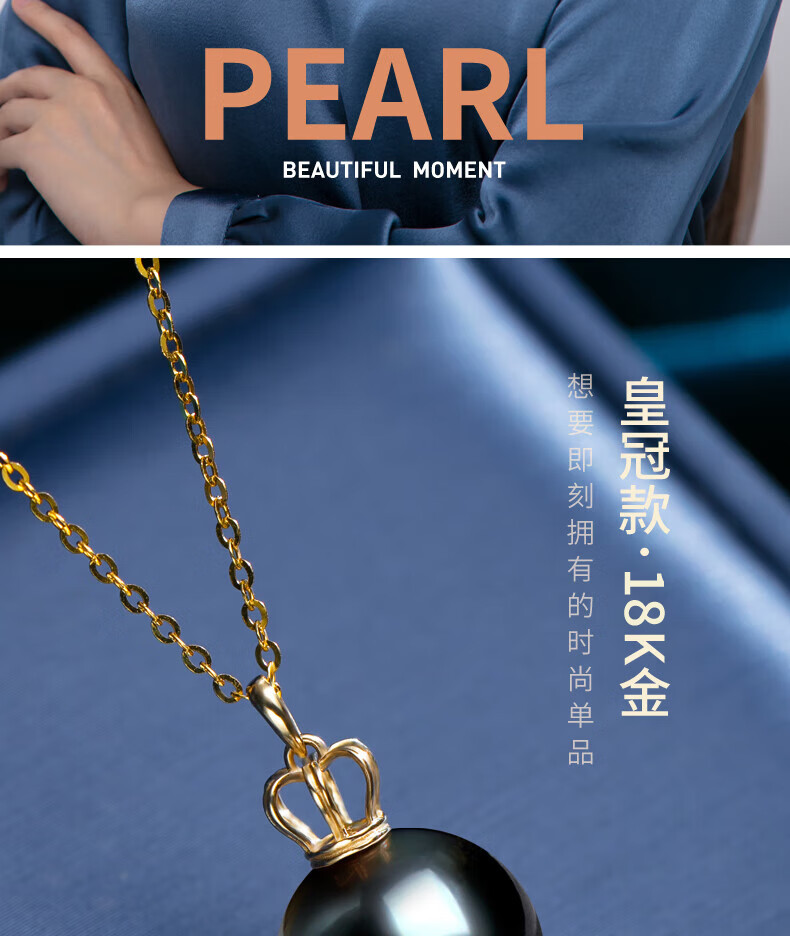 Nan Xi Tahitian Black Pearl Pendant Single 18K Gold Crown Black Seawater Pearl Necklace Birthday Gift for Girlfriend White 18k Gold Black Series 10-11mm Grade A/Slightly Flawed