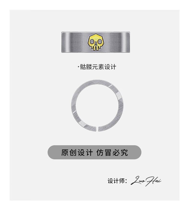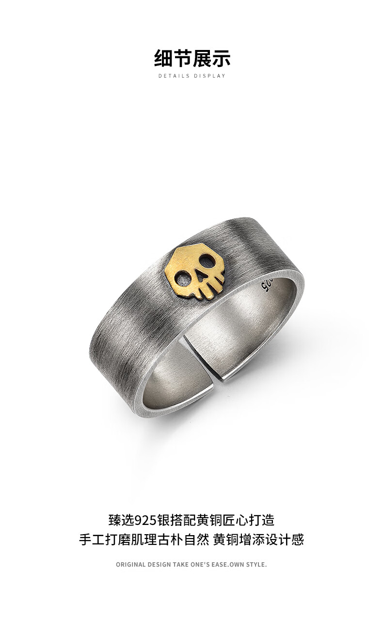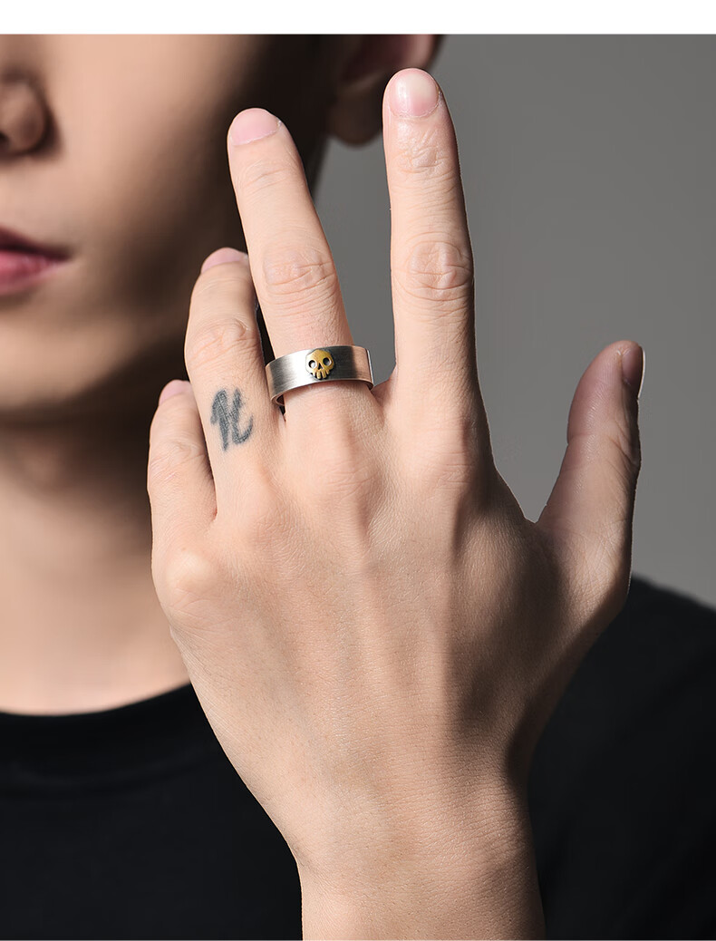 Mingyang Decorative Sea 925 Silver Skull Ring Men's Index Finger Ring Trendy Retro Original Personality Fashion Adjustable Open Ring Skull Ring (Open Adjustable)