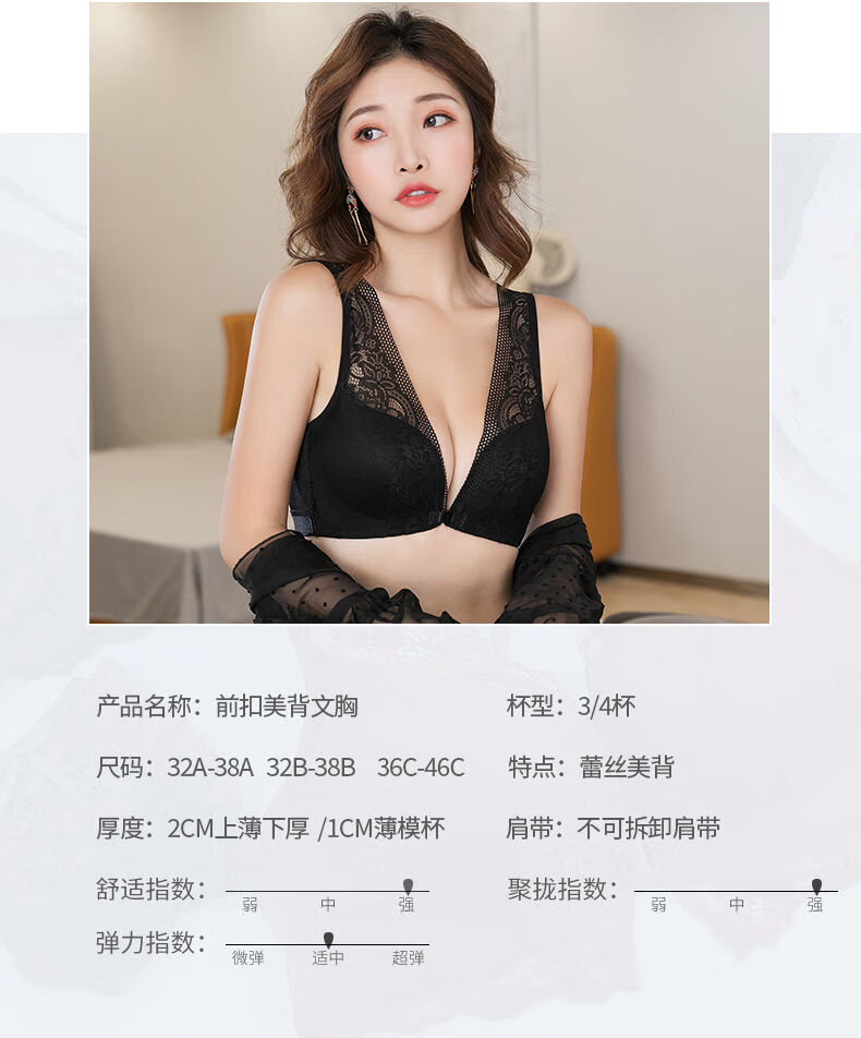 Adore Autumn and Summer Front Button Beautiful Back Vest Bra Set Sexy Underwear Women's Wireless Summer Thick and Thin Style Poly Black Set 32/70A (Thin at the Top and Thick at the Bottom)