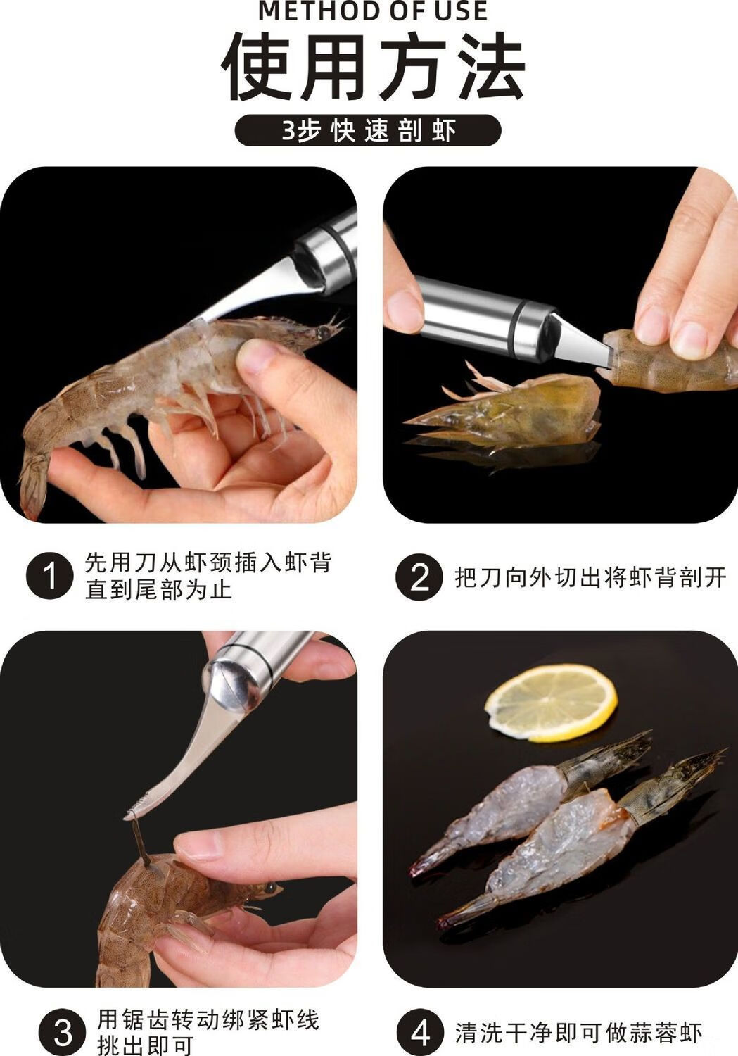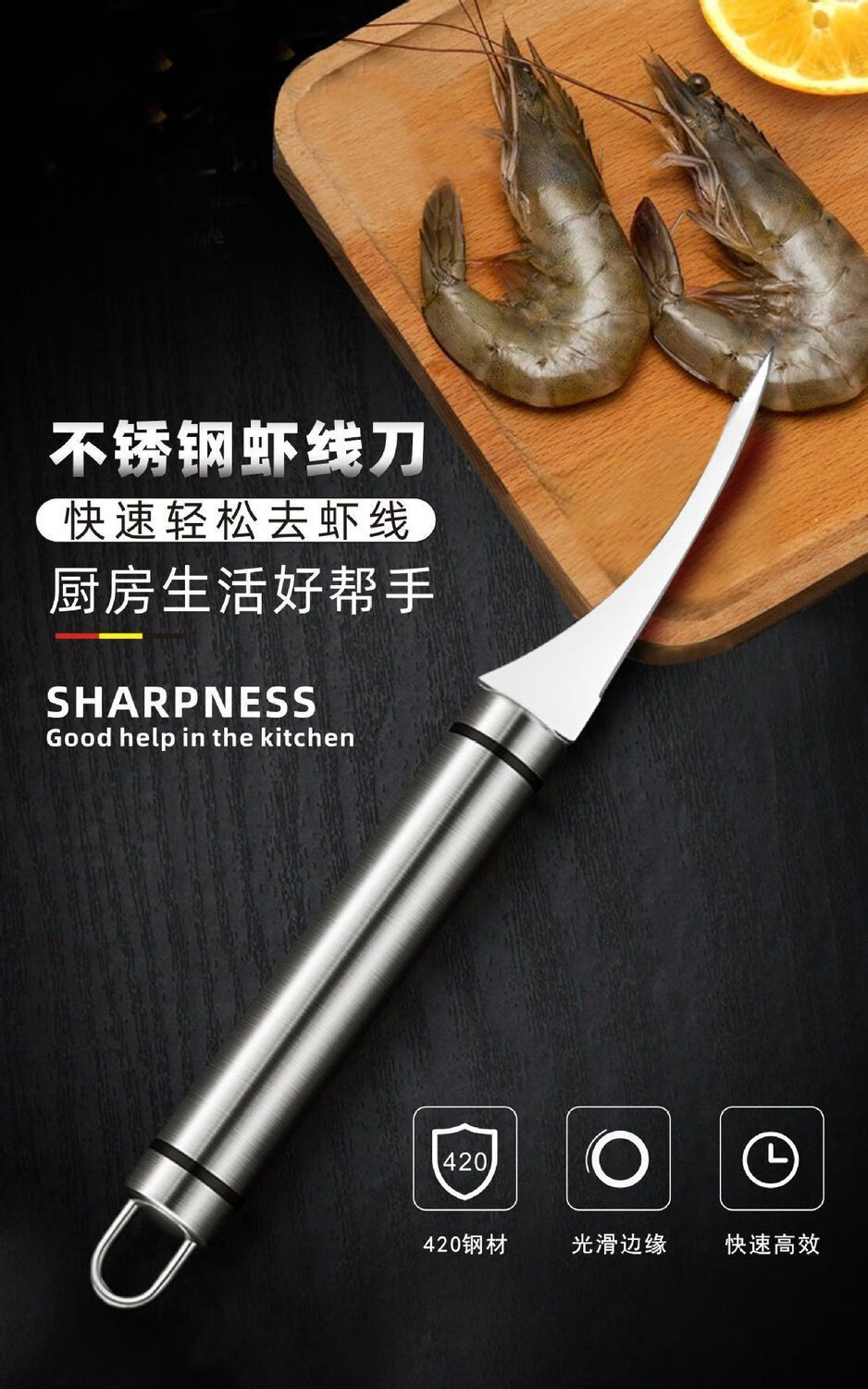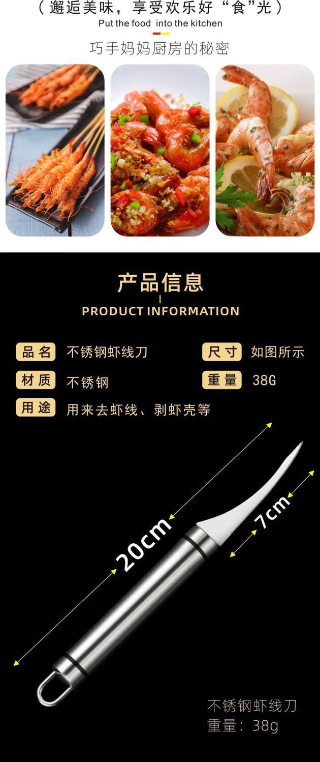Jingdie Shrimp Sealing Knife, Shrimp Sealing Knife, Shrimp Intestine, Shrimp Cleaning Artifact Kitchen Tool, Stainless Steel Fish Belly Cutting Shrimp Knife, Stainless Steel Shrimp Sealing Knife + Knife Cover