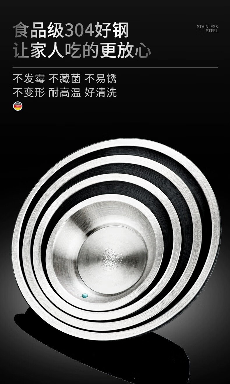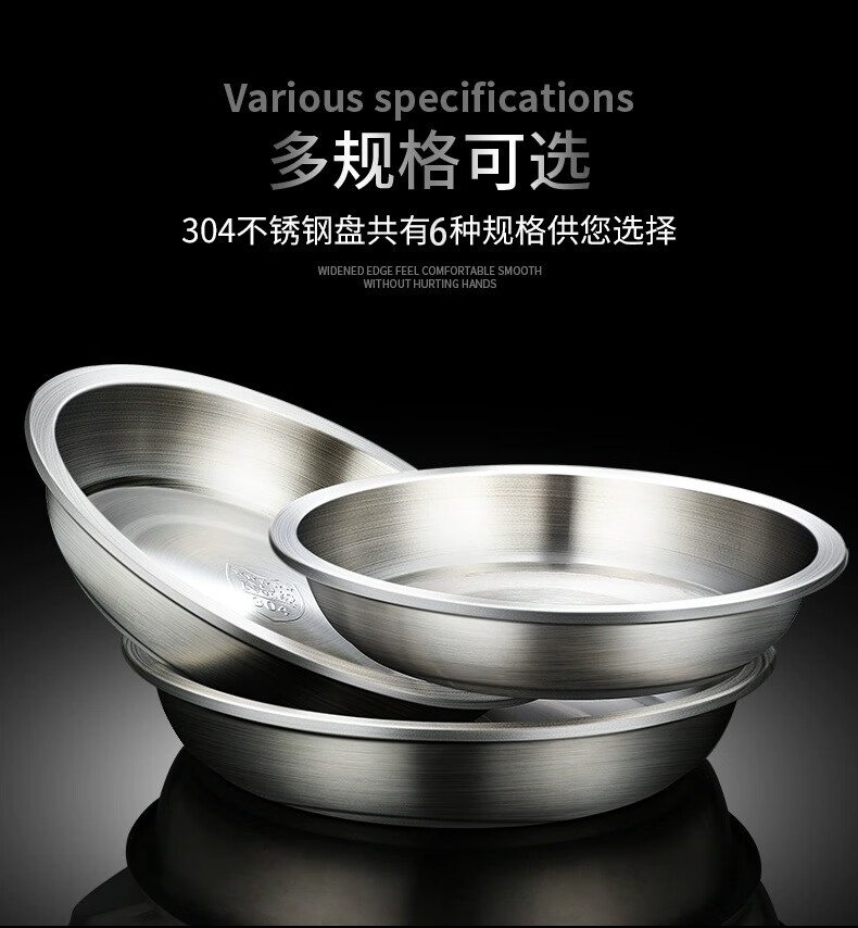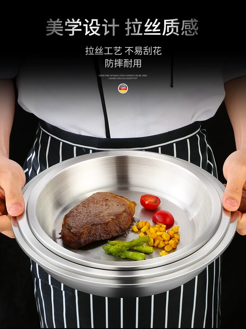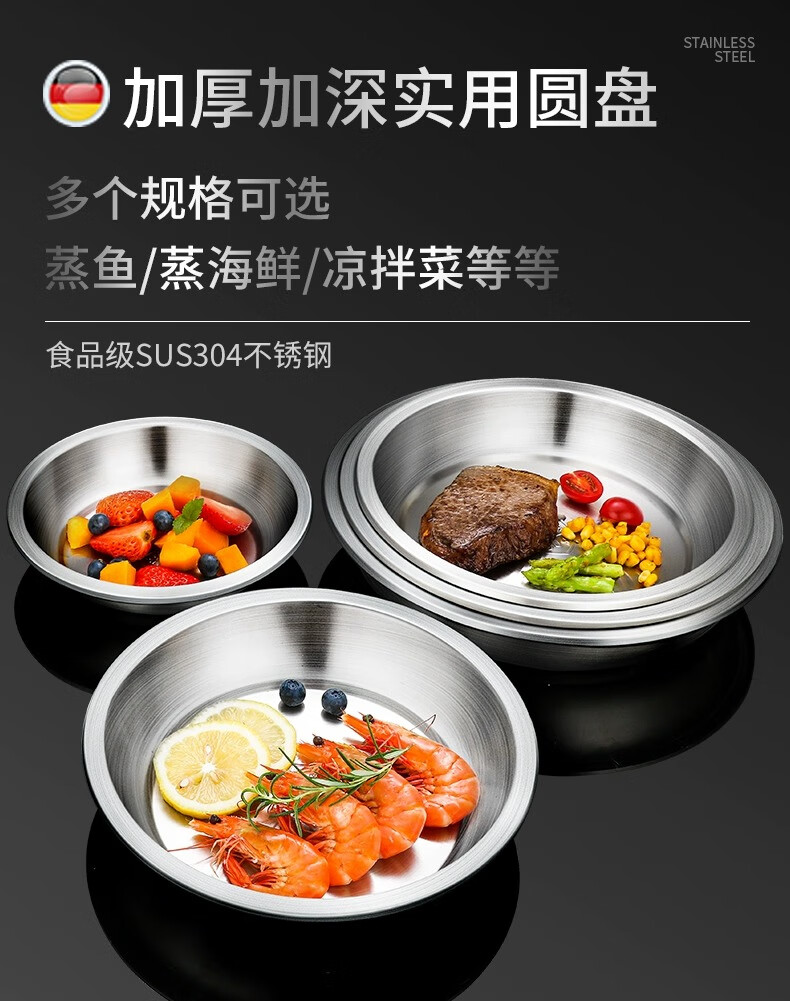 Labton stainless steel deep plate food grade round plate thickened vegetable plate deep plate tray soup plate tableware dinner plate snack plate fish plate 316 material 20cm round plate