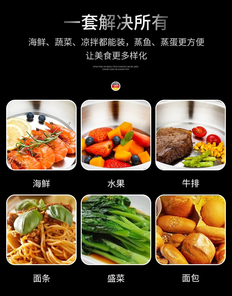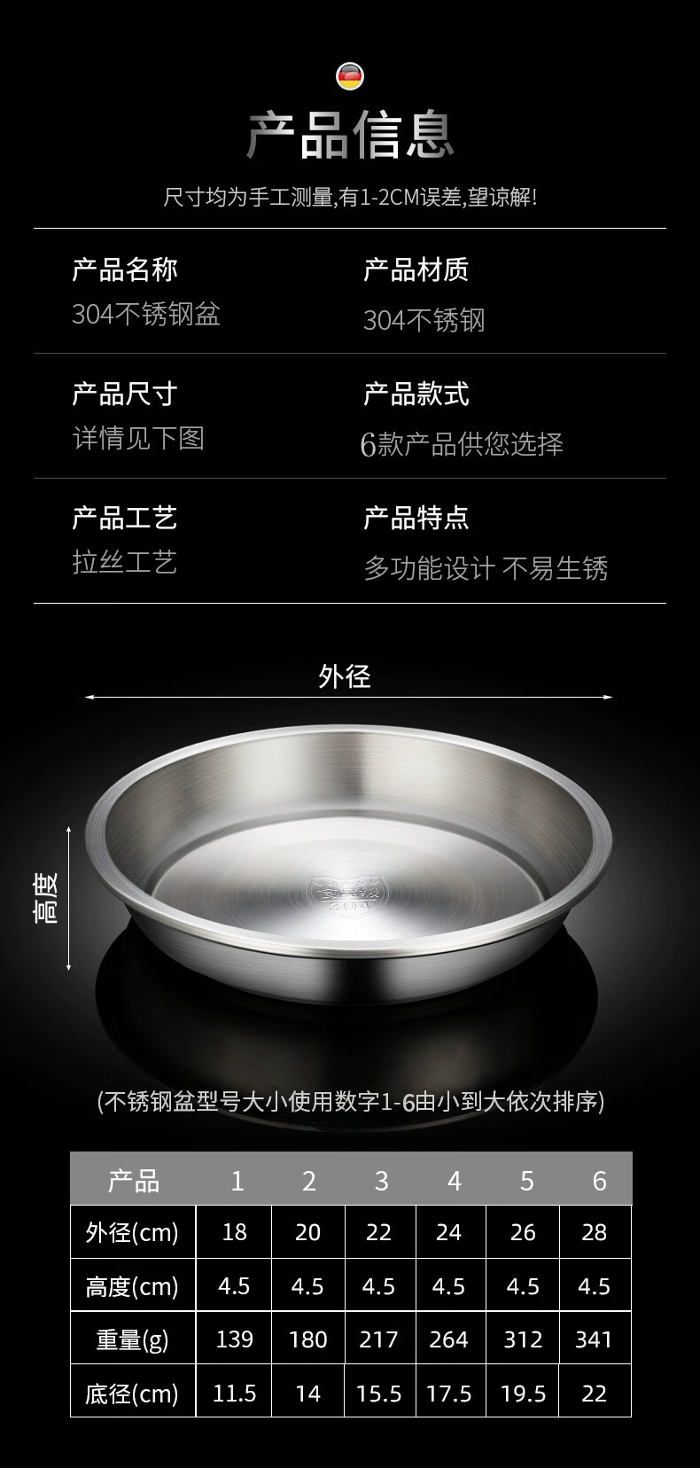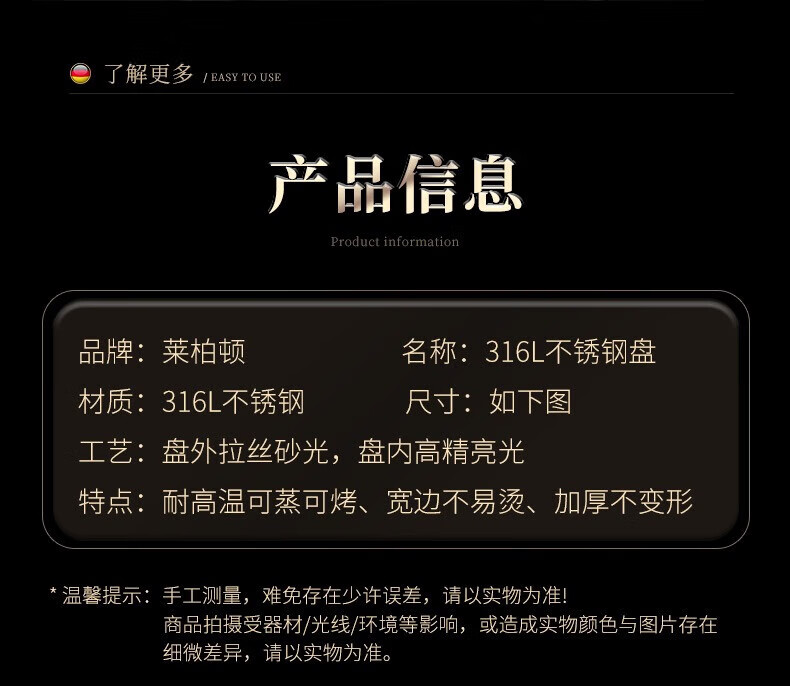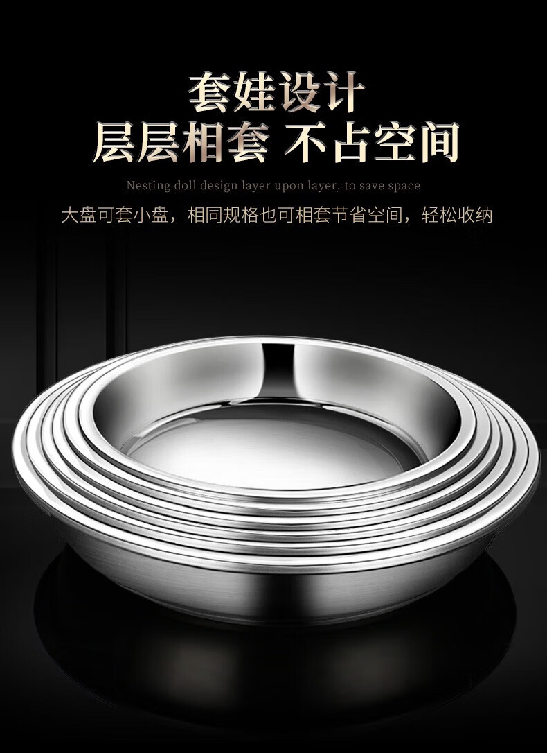 Labton stainless steel deep plate food grade round plate thickened vegetable plate deep plate tray soup plate tableware dinner plate snack plate fish plate 316 material 20cm round plate