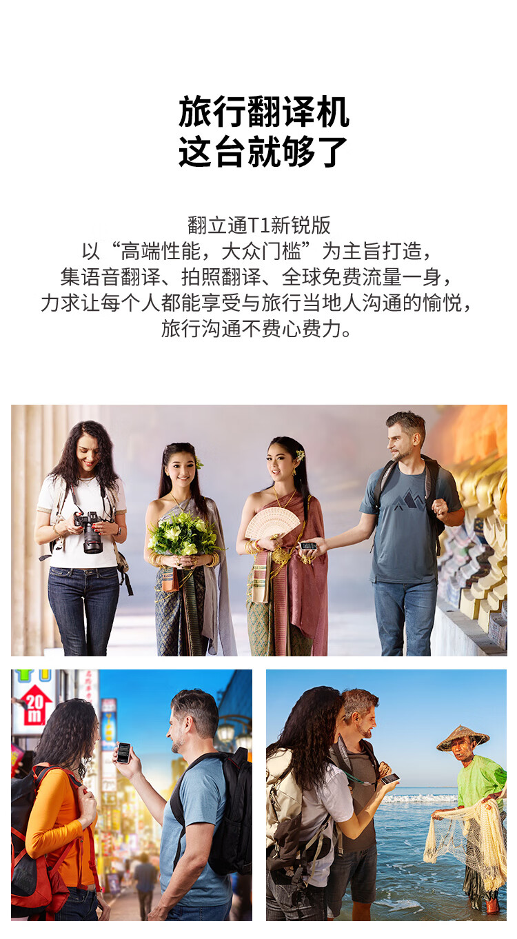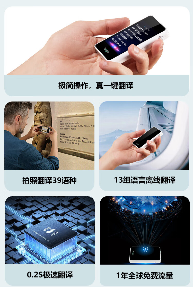 Time and space pot T1 mini handheld translator multi-lingual offline language photo translation 1 year free traffic translation T1mini pearl white