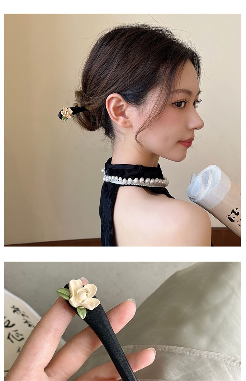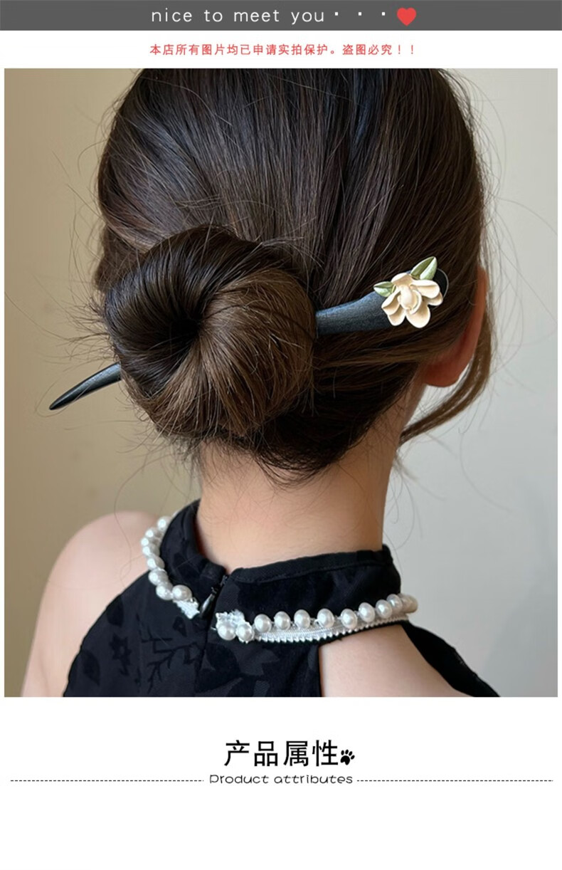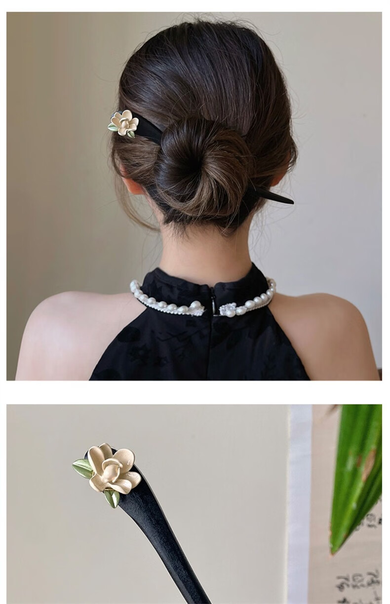 Zhuo Keke retro wooden hairpin, ancient style simple ball hair ornament, high-end fairy hairpin, temperament Hanfu hairpin, a gardenia flower