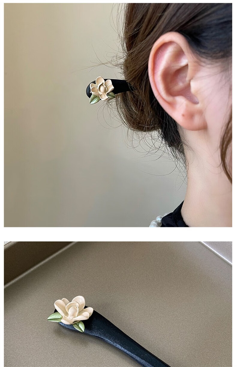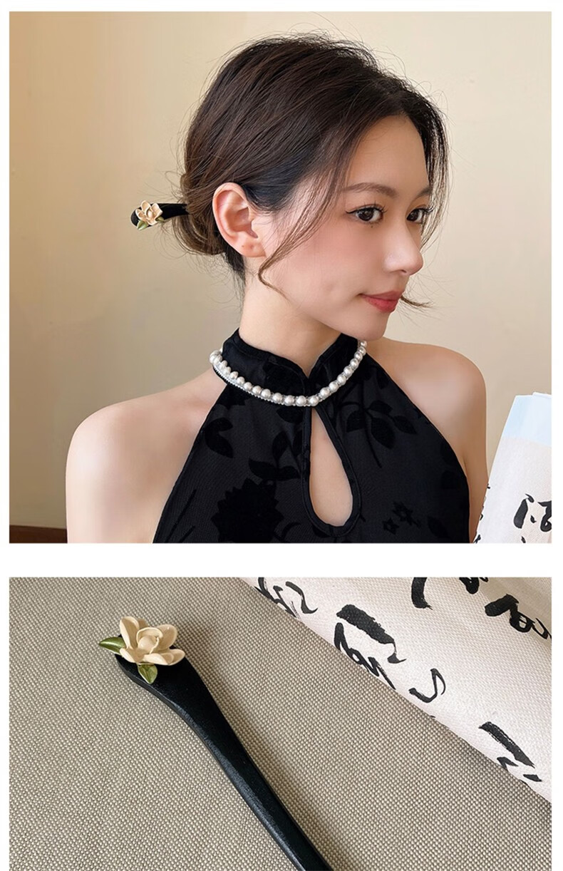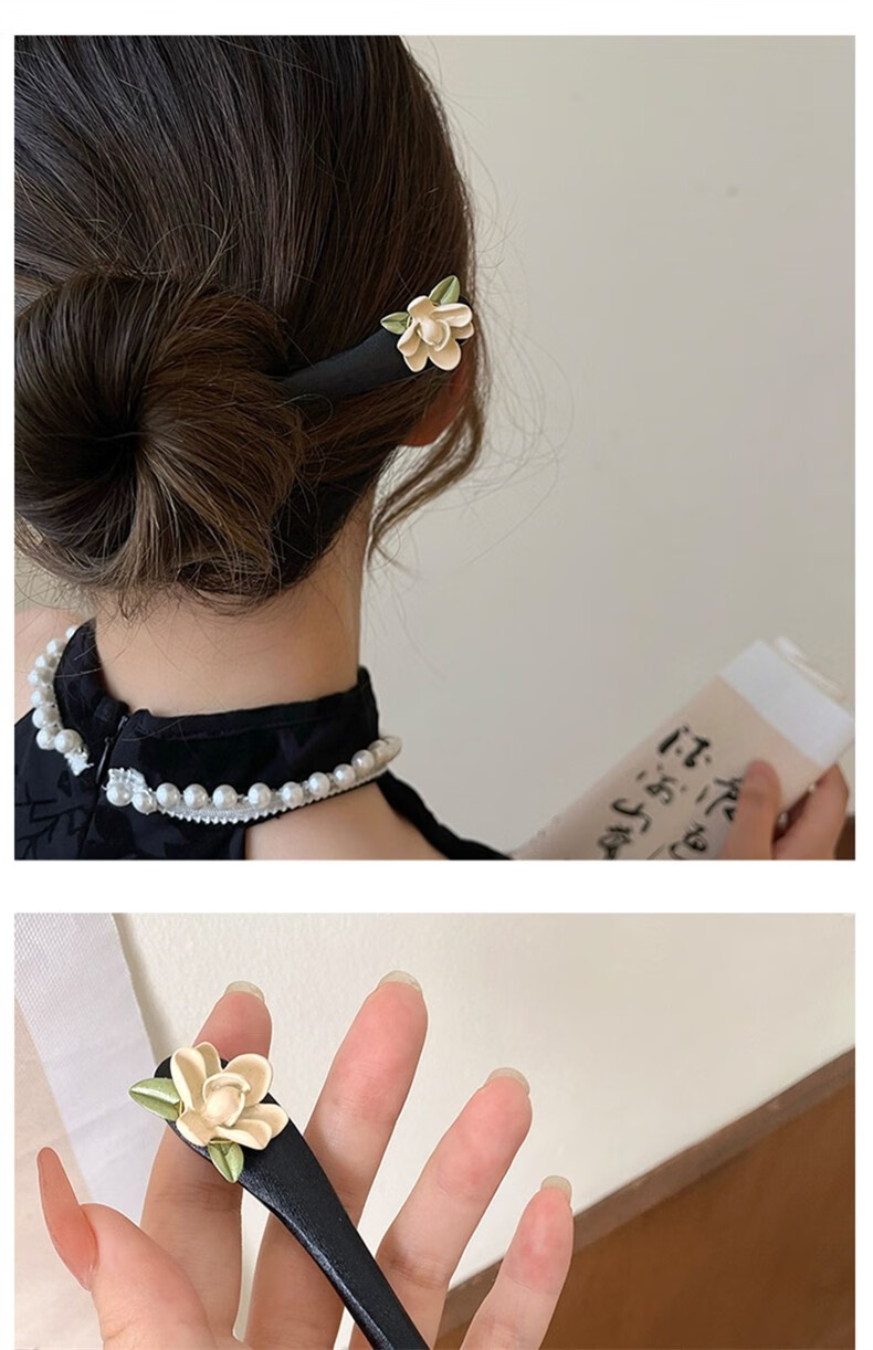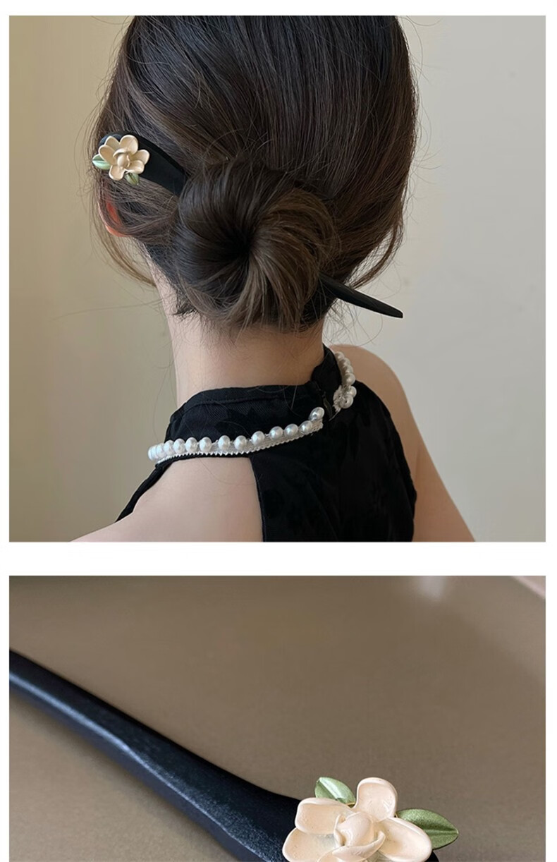 Zhuo Keke retro wooden hairpin, ancient style simple ball hair ornament, high-end fairy hairpin, temperament Hanfu hairpin, a gardenia flower