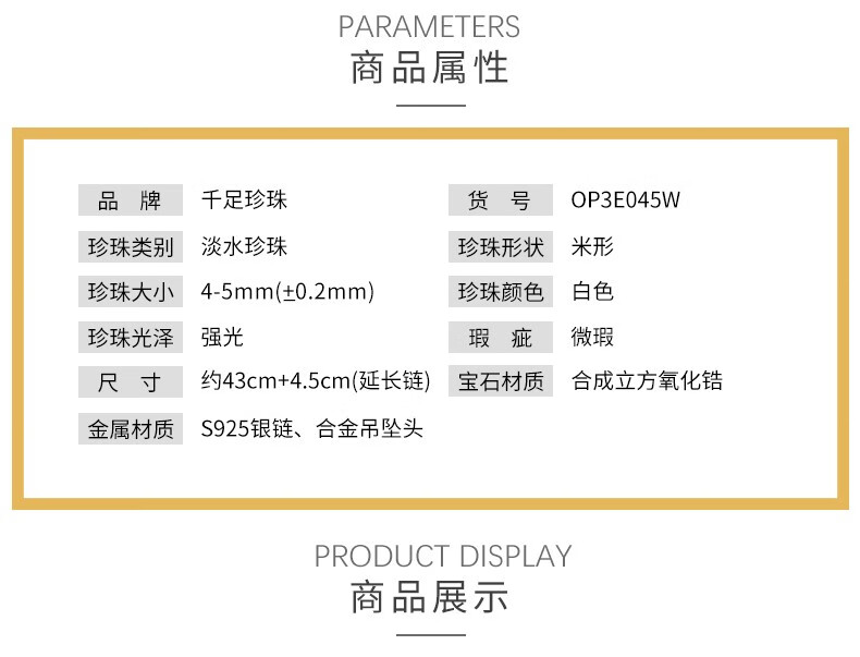 Thousand-foot Pearl Freshwater Pearl Pendant 4-5mm Meter-Shaped Alloy Buckle Necklace White 4-5mm
