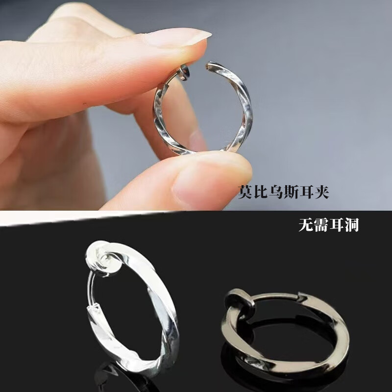 Zushange Mobius ear clip men's high-end niche personality non-hole men's earrings fashionable non-pierced handsome earrings 12mm silver one pair