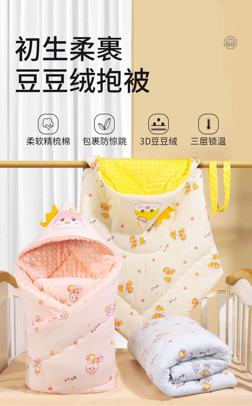 Mamaguo (org.mama) newborn blanket, autumn and winter baby blanket, thickened baby quilt, anti-jump A-type supplies, suitable for all seasons, beanie velvet, soft crepe, small lemon