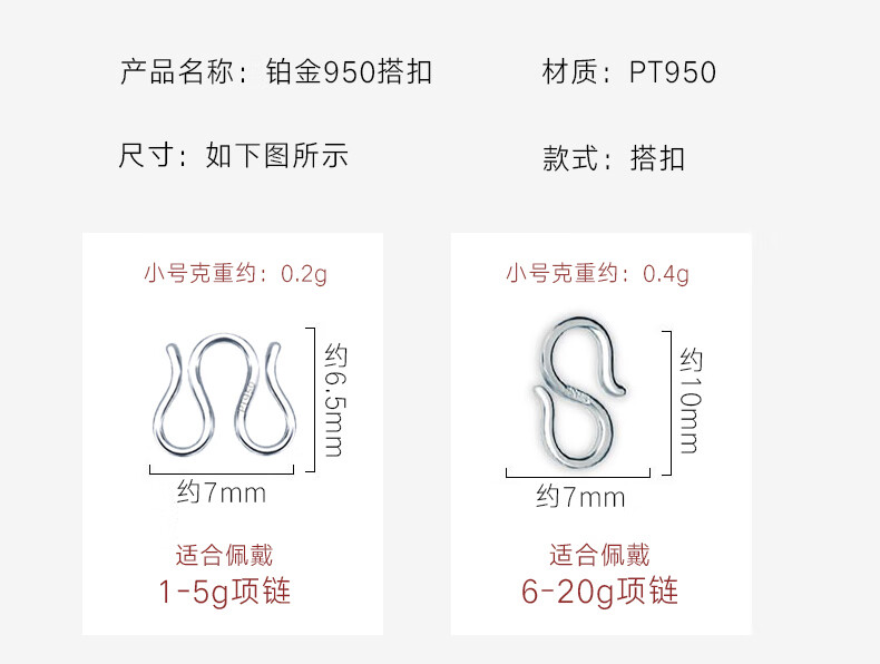 Pavilion platinum 950M buckle necklace buckle DIY platinum accessories W buckle S buckle bracelet connection buckle double-ended live mouth small W buckle PT950 - about 0.3 grams