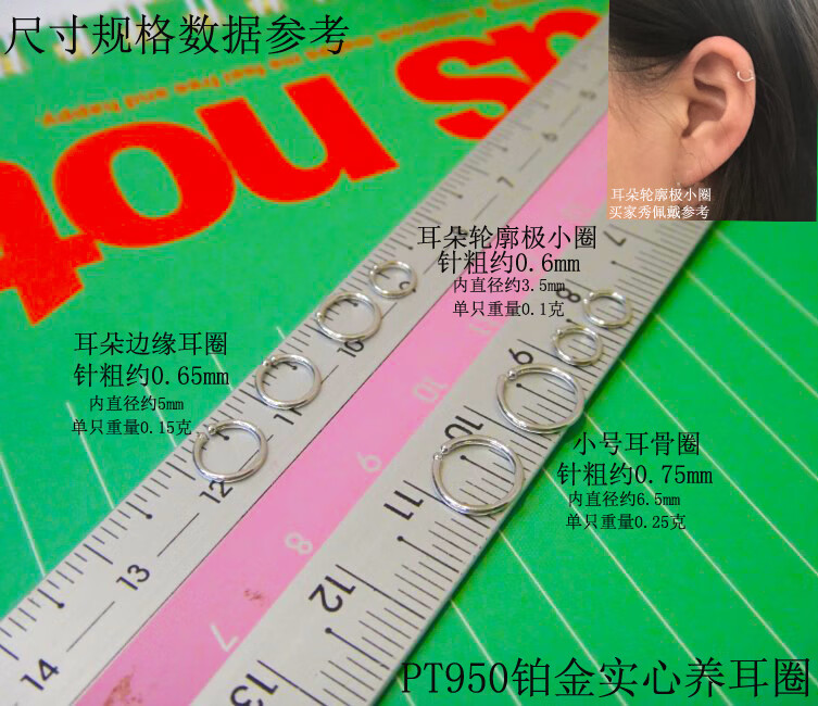 Pavilion Pt990 platinum earrings, solid earrings, platinum Pt950 ear wires, fashionable and simple ear bone rings, nose rings, visited, small platinum rings, about 0.2 grams*pair