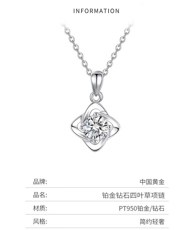 China Gold (CHINA GOLD) platinum diamond necklace women's platinum four-leaf clover pendant birthday gift for girlfriend and wife wedding anniversary practical gift platinum four-leaf clover necklace - about 24 points of real diamonds