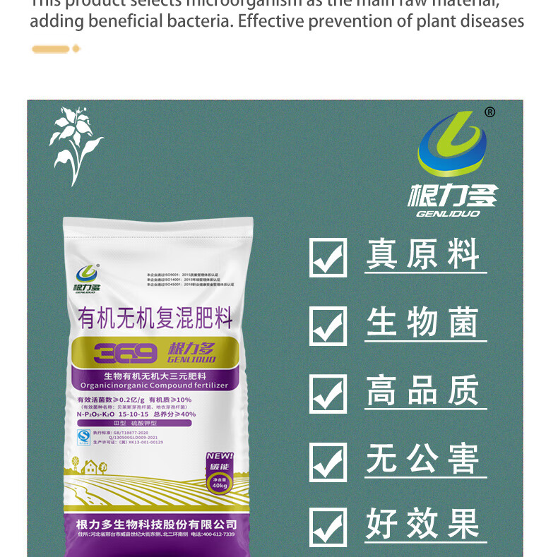 Genliduo nitrogen, phosphorus and potassium compound fertilizer for flowers, vegetables and fruit trees, agricultural fertilizer, added microbial organic matter, 4.5 kg in bulk