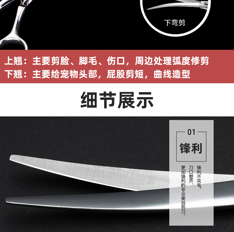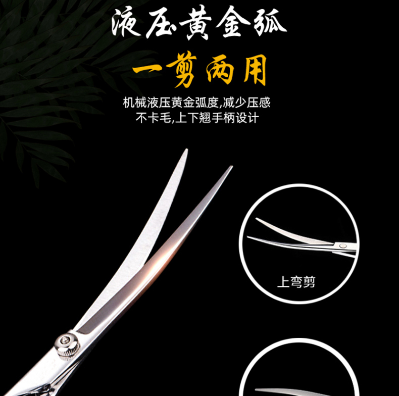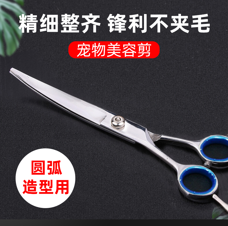 Jipai pet grooming scissors, trimming scissors, curved scissors, straight scissors, dog shearing scissors, Teddy Bichon professional trimmer, pet grooming scissors, double curved, universal 7 inches