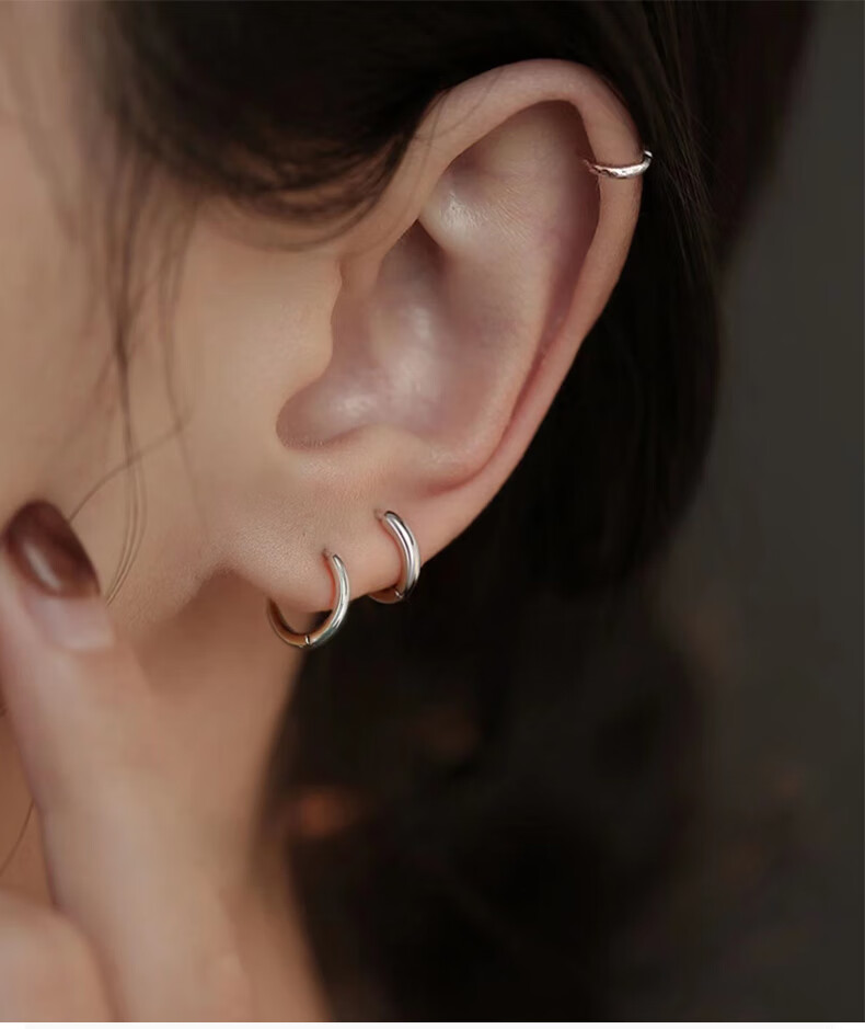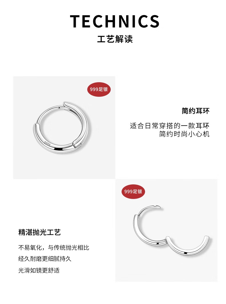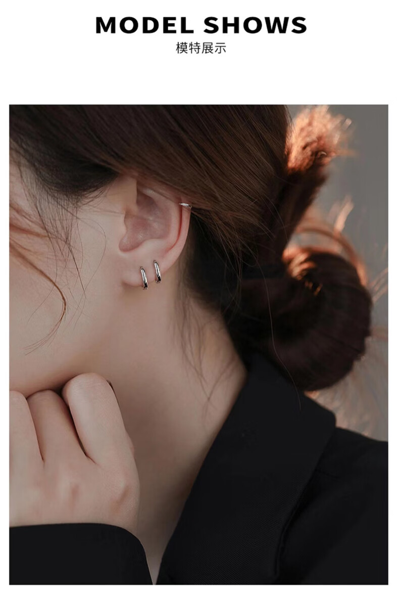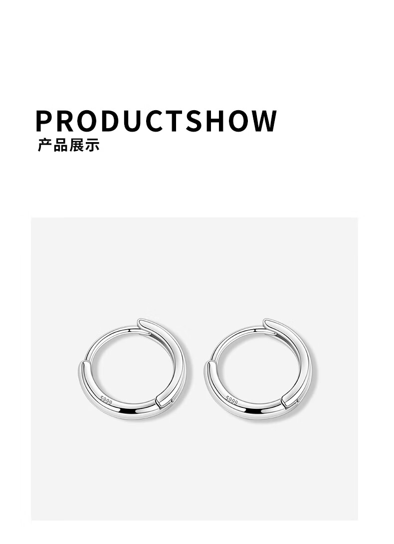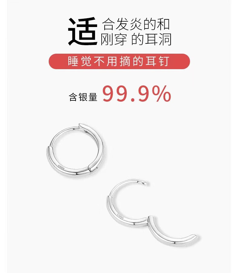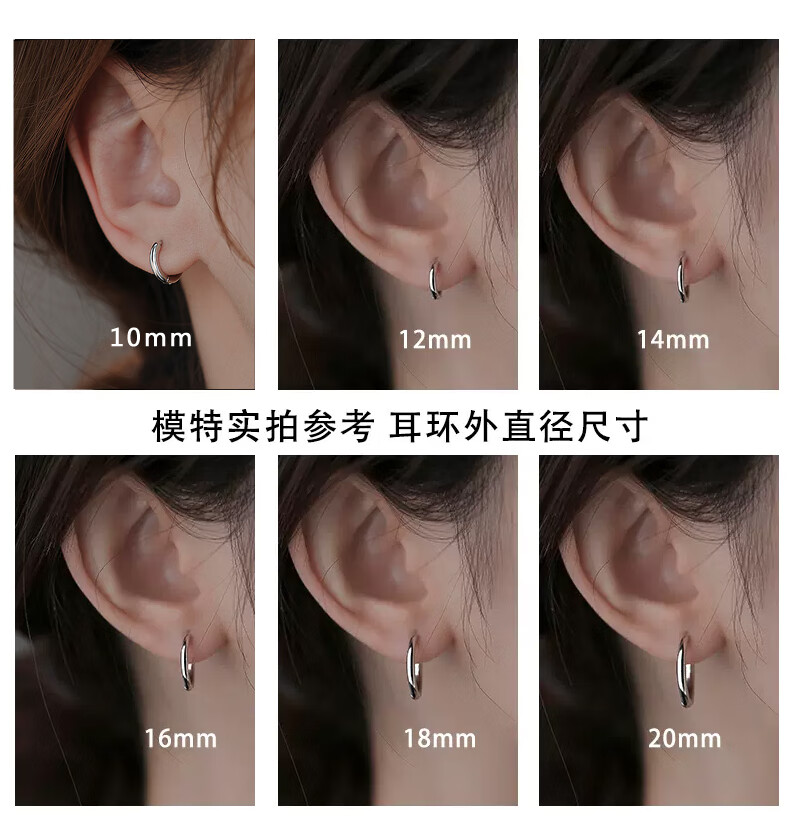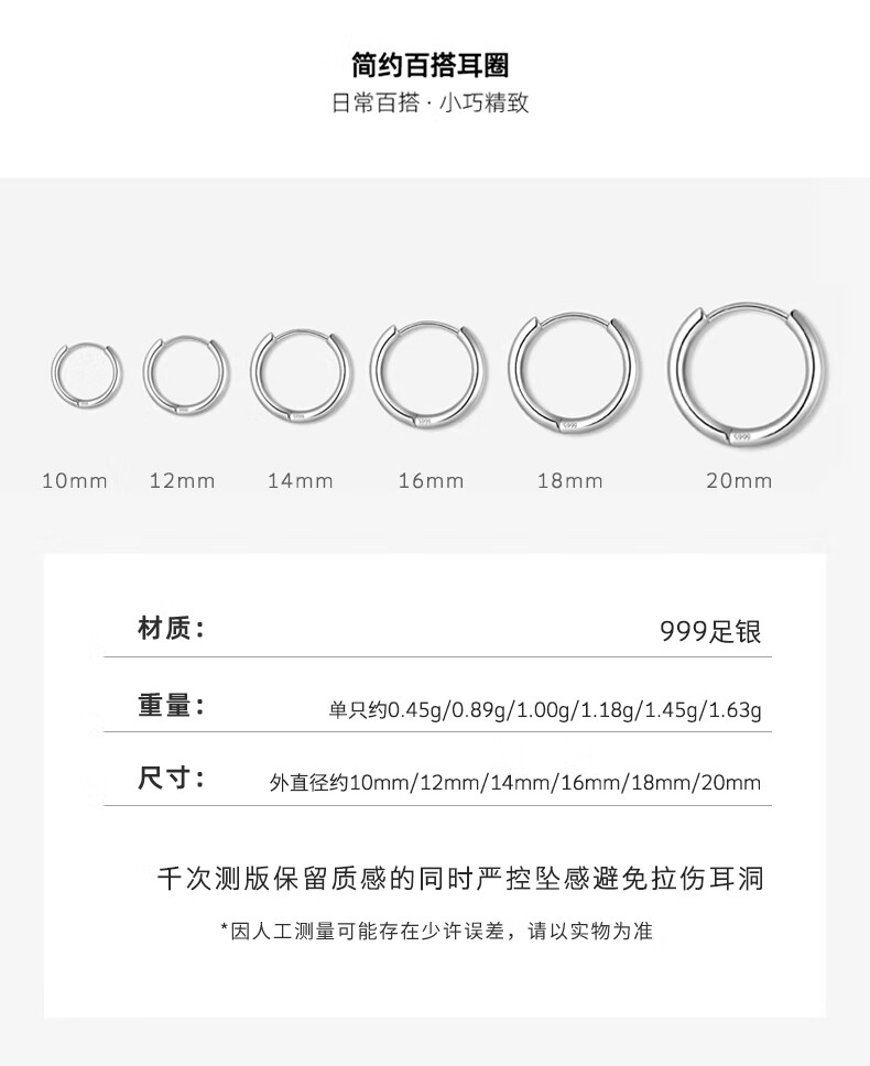 Su Shiliu 999 silver earrings for women with pierced ears, plain hoops, ear bone rings, ear buckles, high-end earrings, earrings, earrings, birthday gifts for women, 999 pure silver earrings, 14mm pair