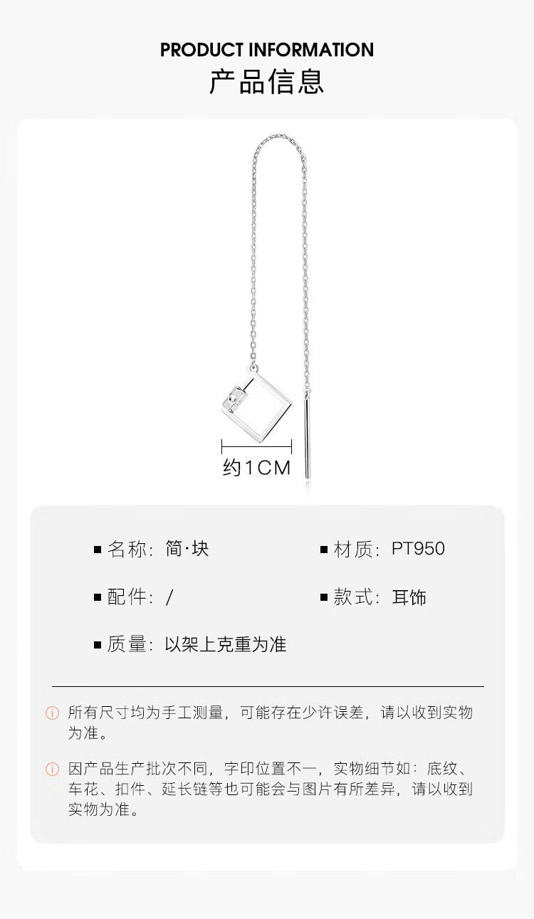 Ming brand jewelry platinum earrings Pt950 simple single ear wire gift for women BFH0064 single platinum earrings about 0.84 grams