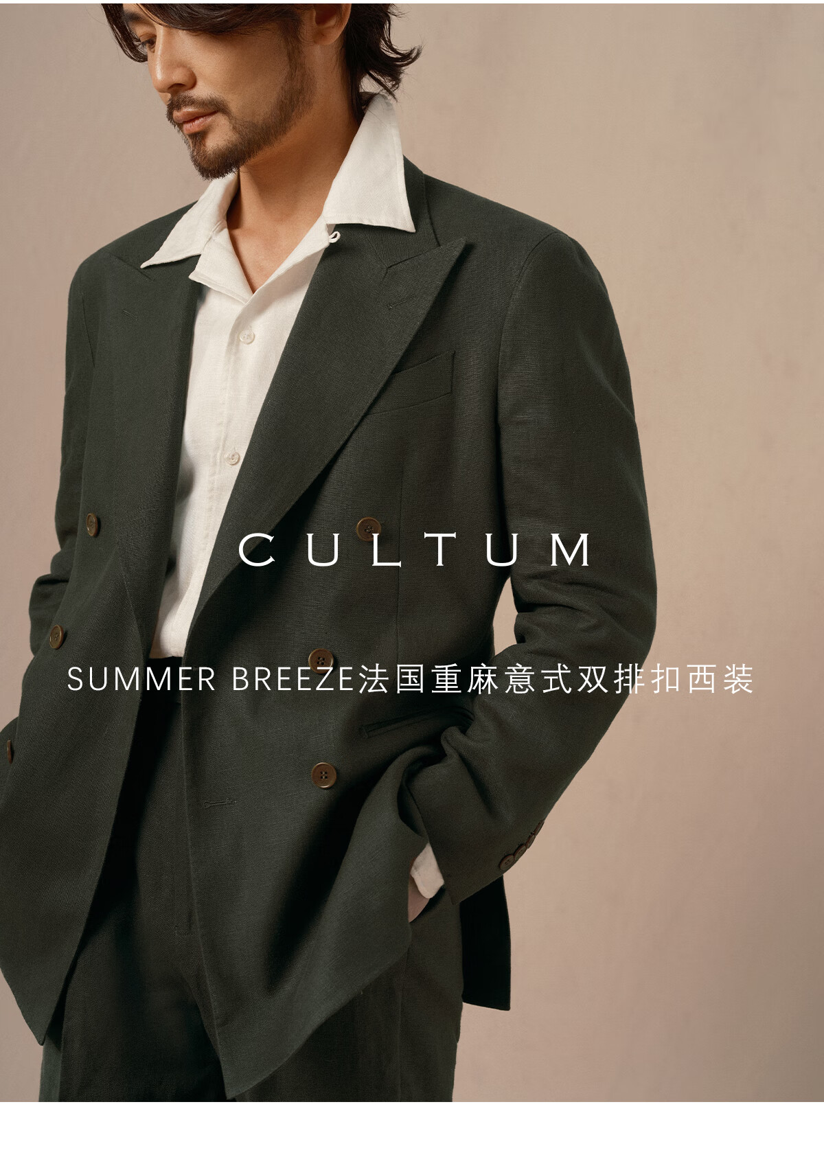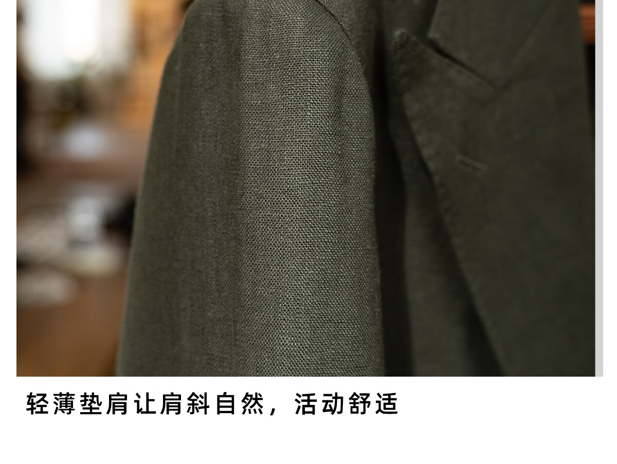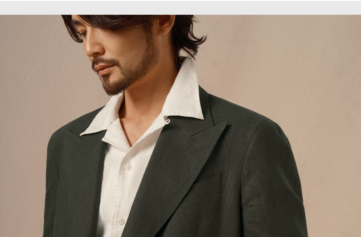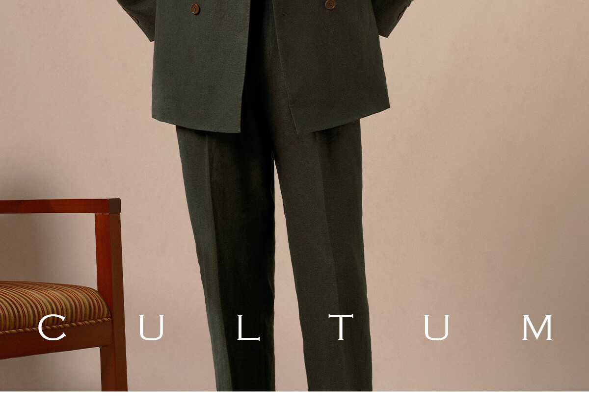 CULTUM 100% French linen autumn Italian style Naples lapel suit suit for men high-end business casual suit dark moss green single suit 175A /50A