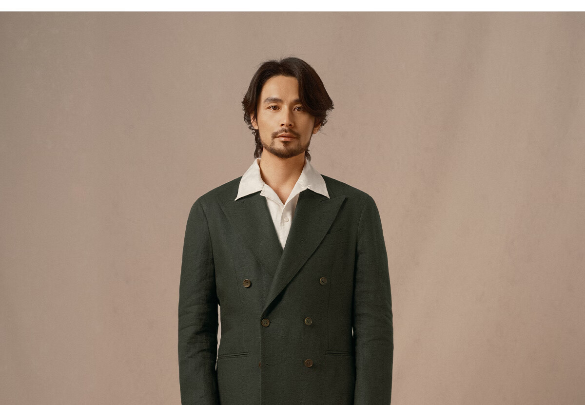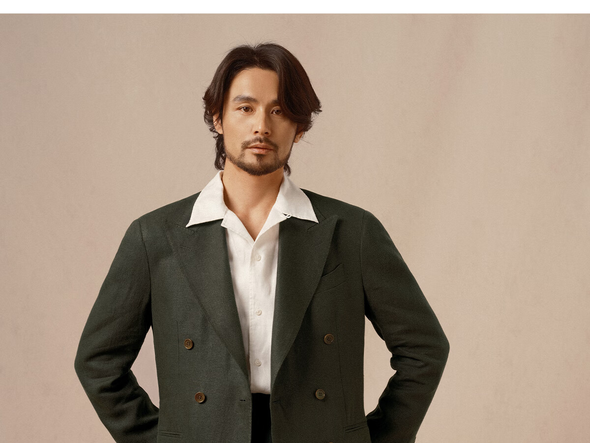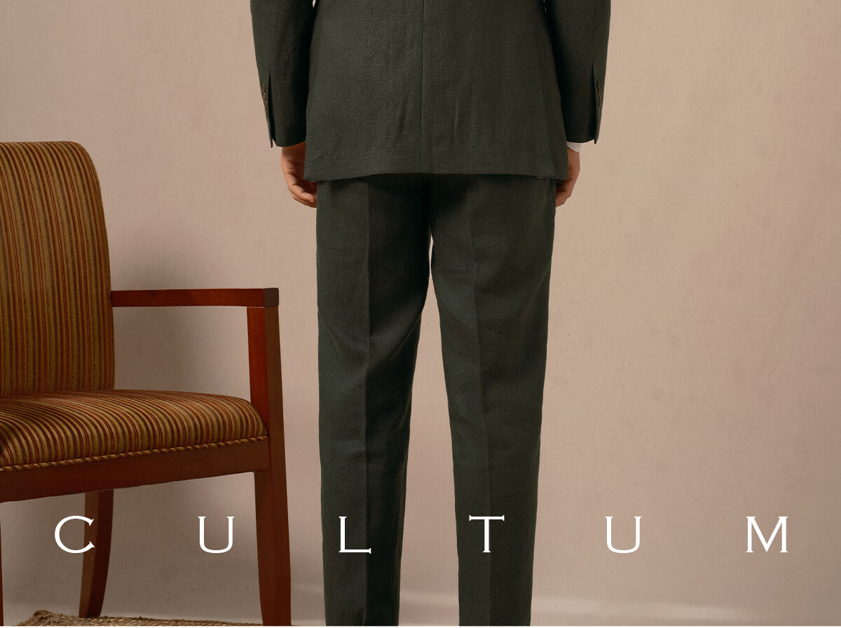 CULTUM 100% French linen autumn Italian style Naples lapel suit suit for men high-end business casual suit dark moss green single suit 175A /50A