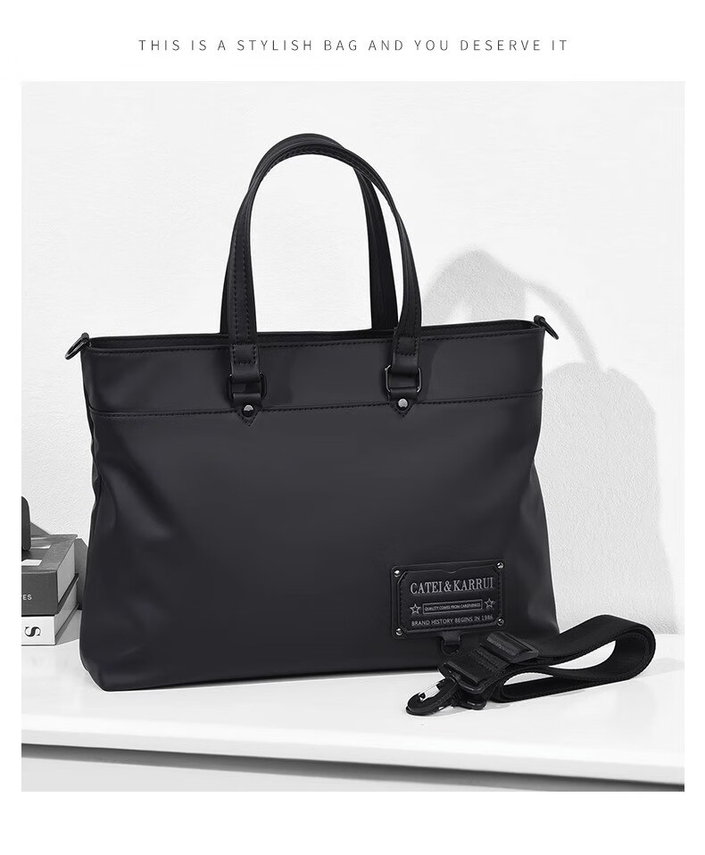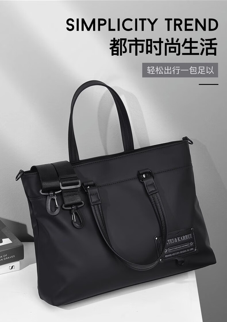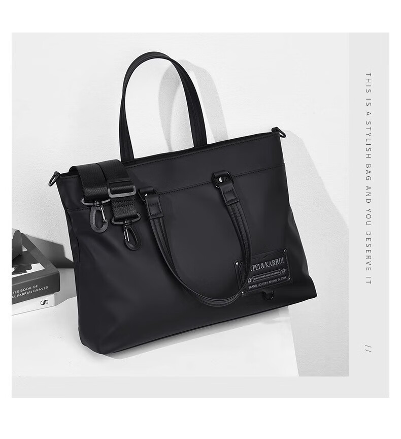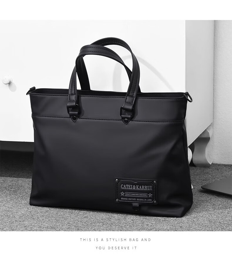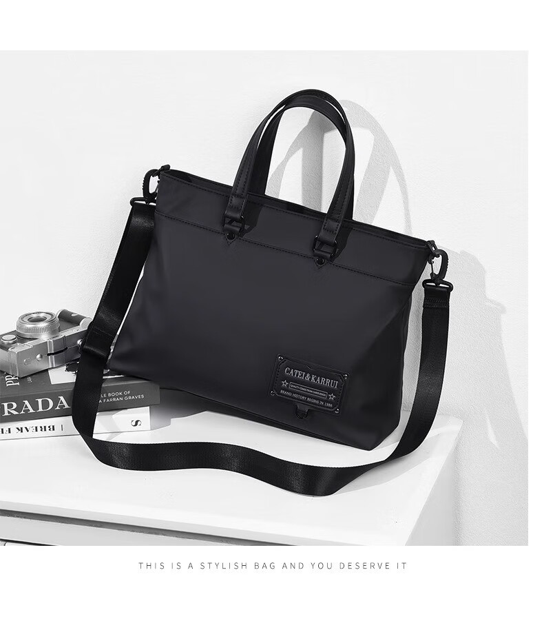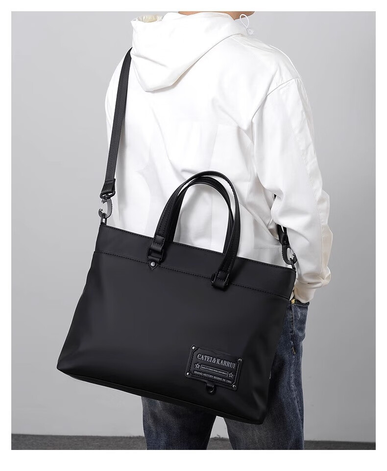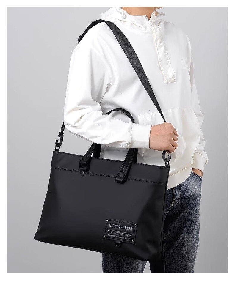 Cateikarrui men's briefcase men's handbag Oxford cloth business large capacity office worker shoulder crossbody computer bag black size approximately length 40*width 11*height 30CM