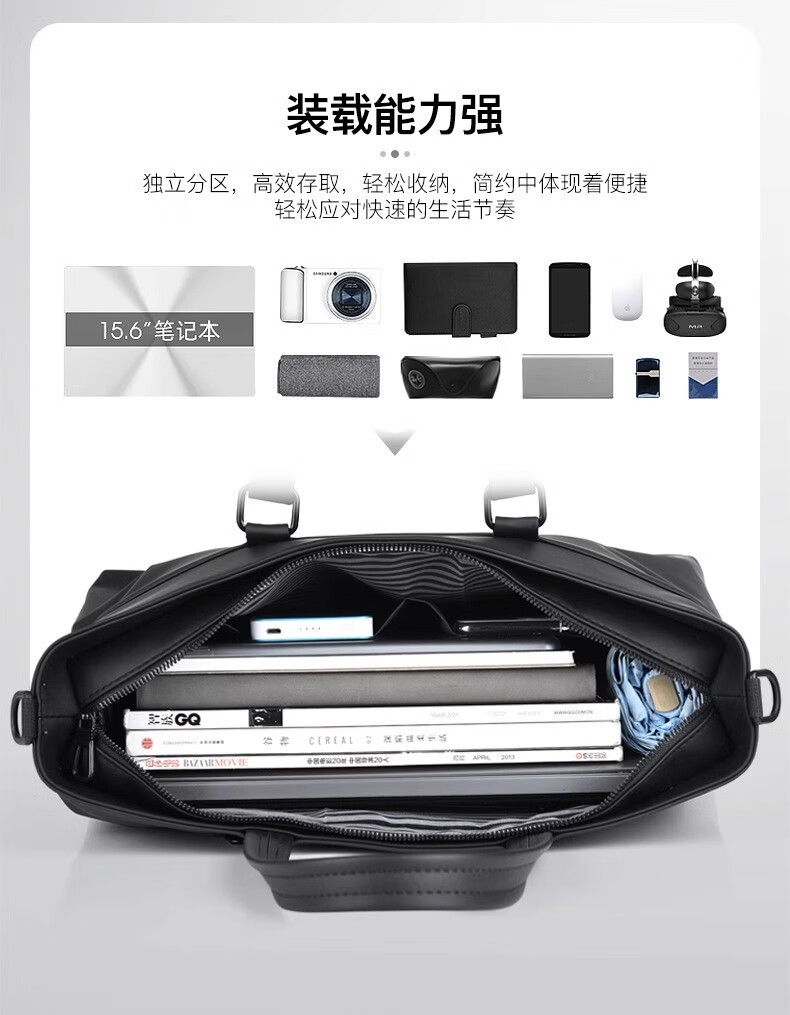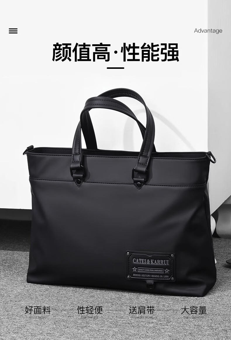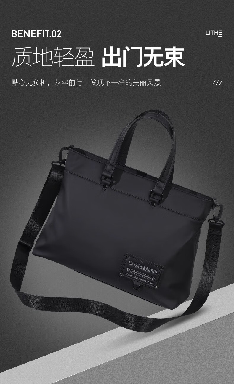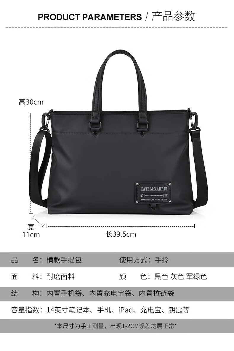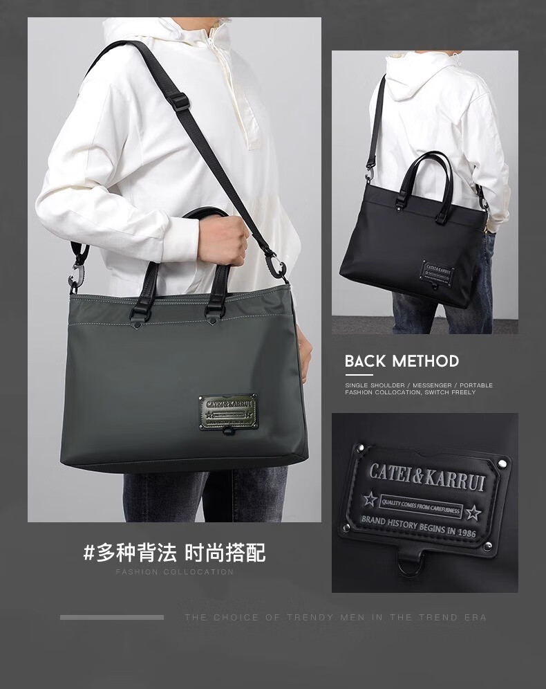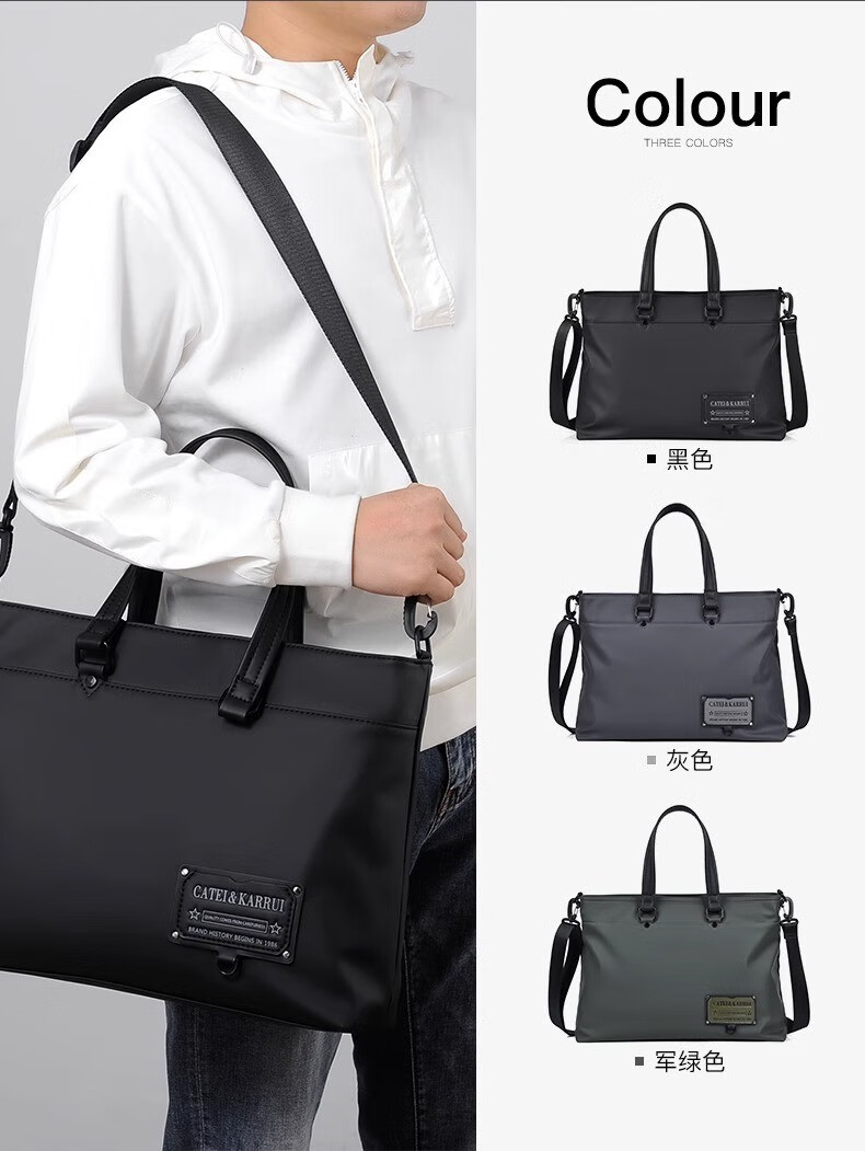 Cateikarrui men's briefcase men's handbag Oxford cloth business large capacity office worker shoulder crossbody computer bag black size approximately length 40*width 11*height 30CM