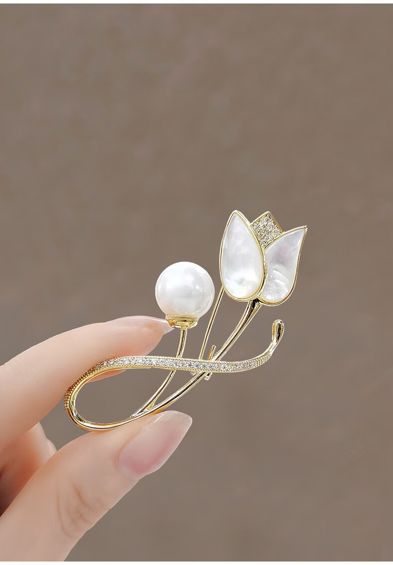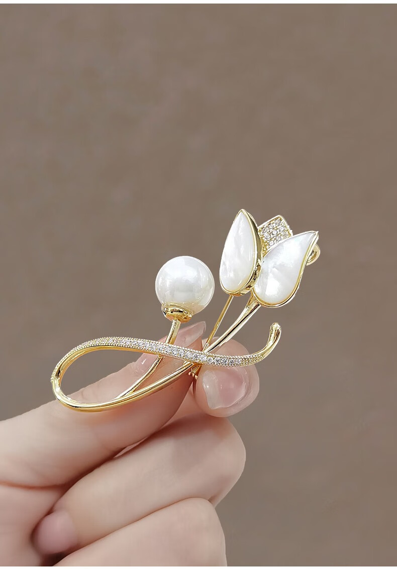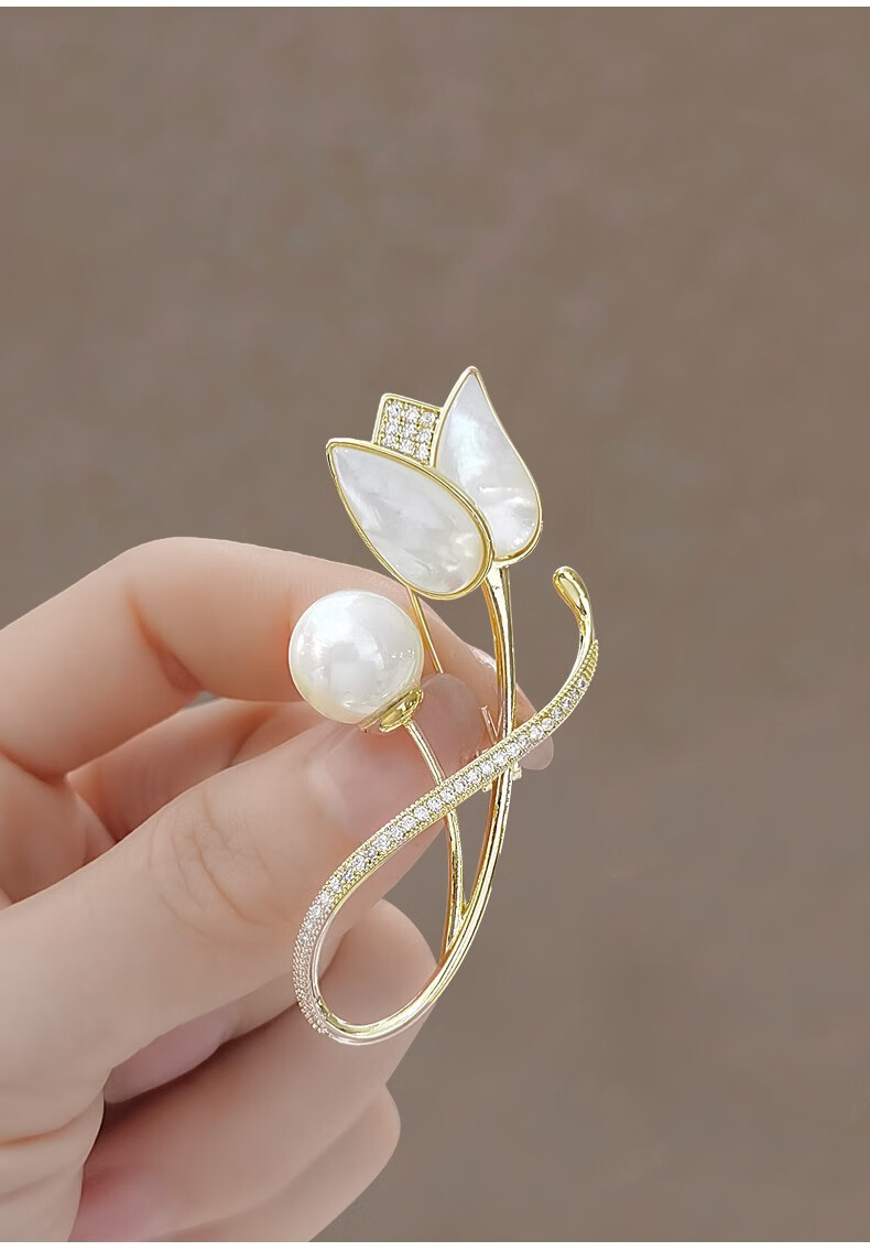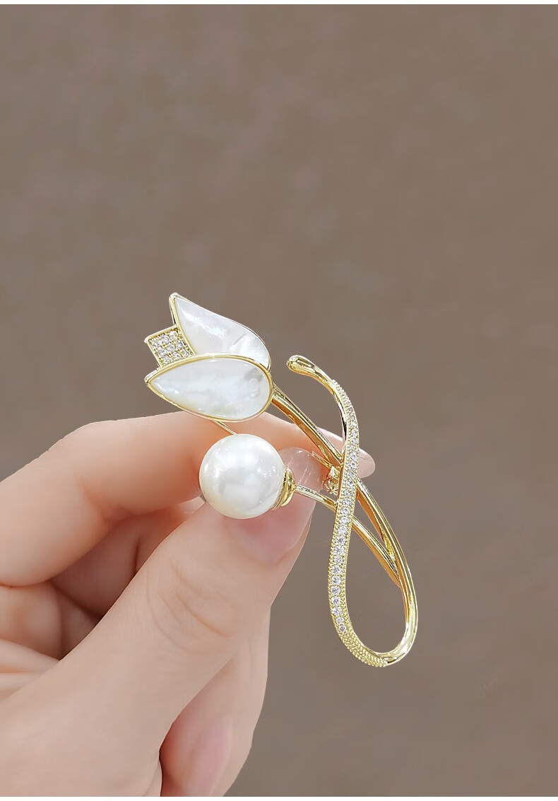 WEISHINI brooch, imitation mother-of-pearl brooch, imitation pearl tulip, delicate flowers, temperament, suit coat, accessories corsage, exquisite imitation pearl tulip, A23-108