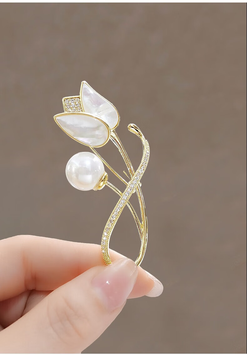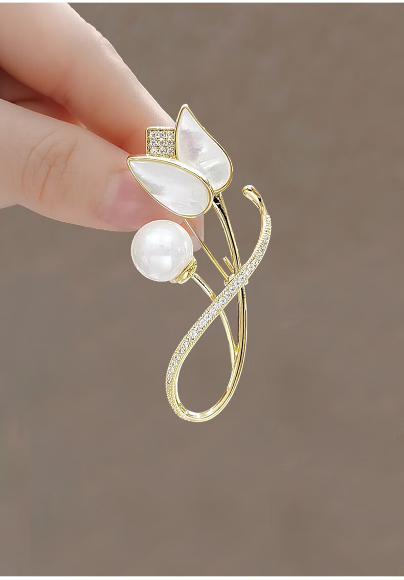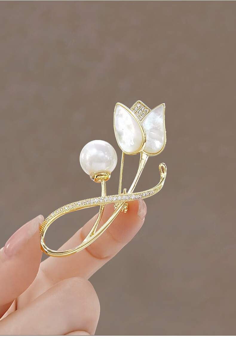 WEISHINI brooch, imitation mother-of-pearl brooch, imitation pearl tulip, delicate flowers, temperament, suit coat, accessories corsage, exquisite imitation pearl tulip, A23-108