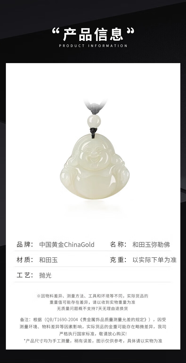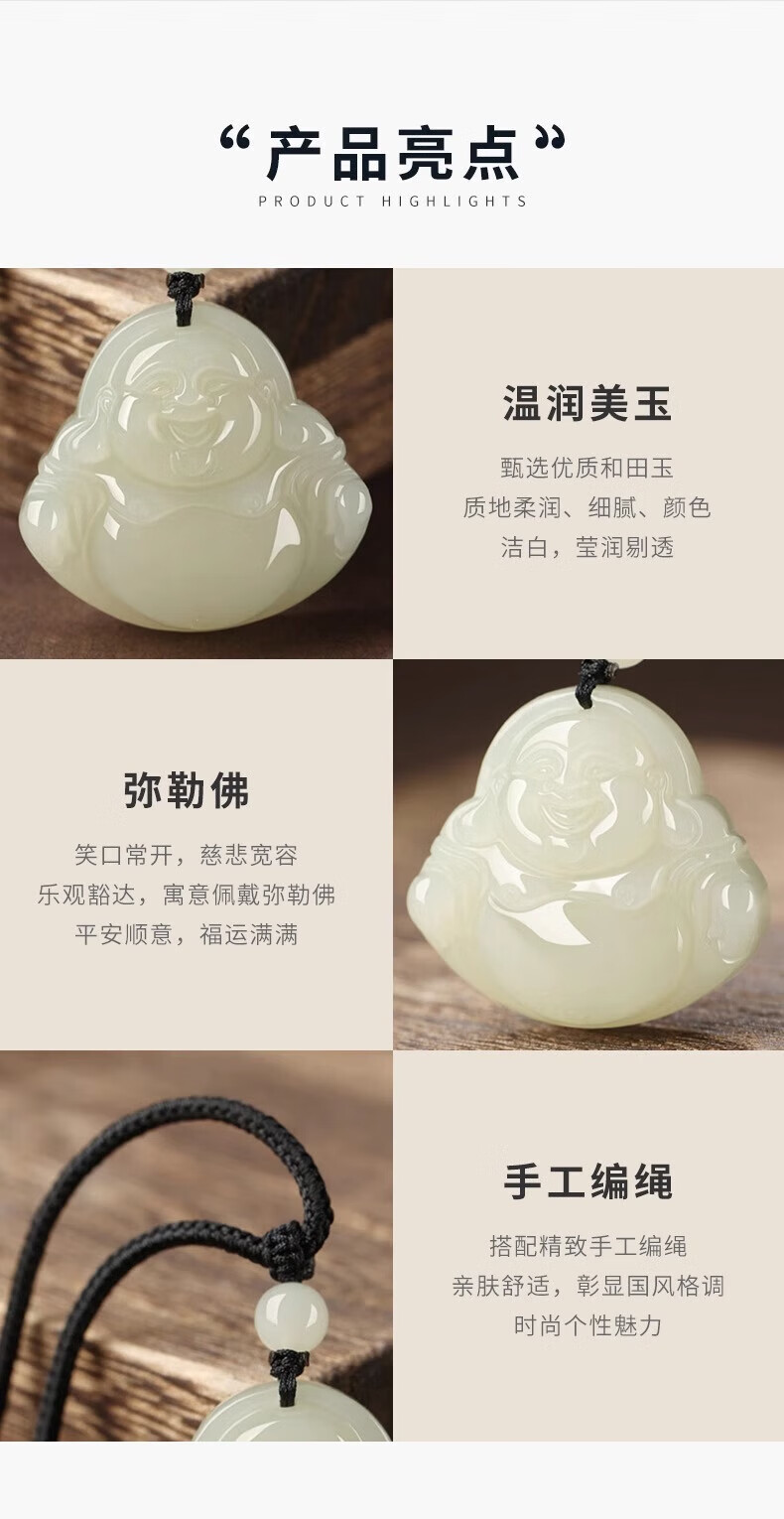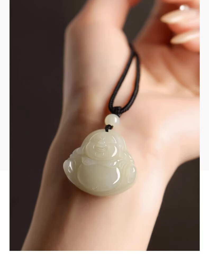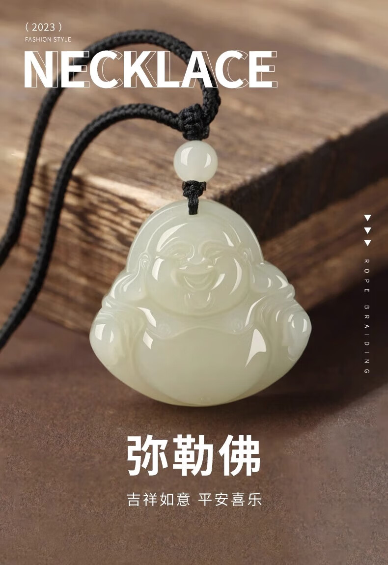 China Gold (CHINA GOLD) Next Day Delivery Hotan Jade Pendant Men's and Women's Maitreya Buddha Necklace Jade Lover's Birthday Gift Year of the Horse Animal Year Gift Today/Next Day Delivery Hotan Jade Maitreya Buddha Necklace