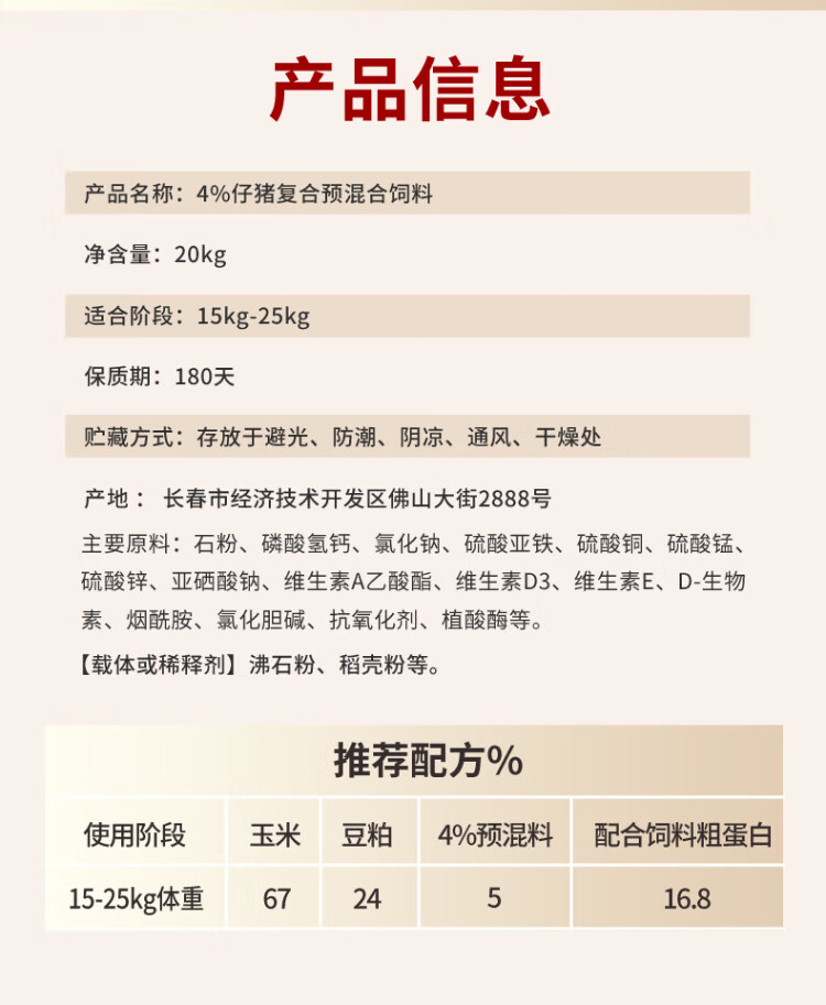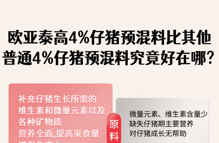 Ouyataigao 4% piglet compound premixed feed piglet fattening calcium powder growth fast skeleton pig feed 20Kg/bag 2 bags 4% piglet compound premixed feed