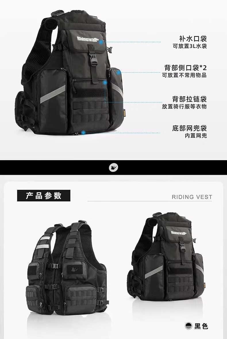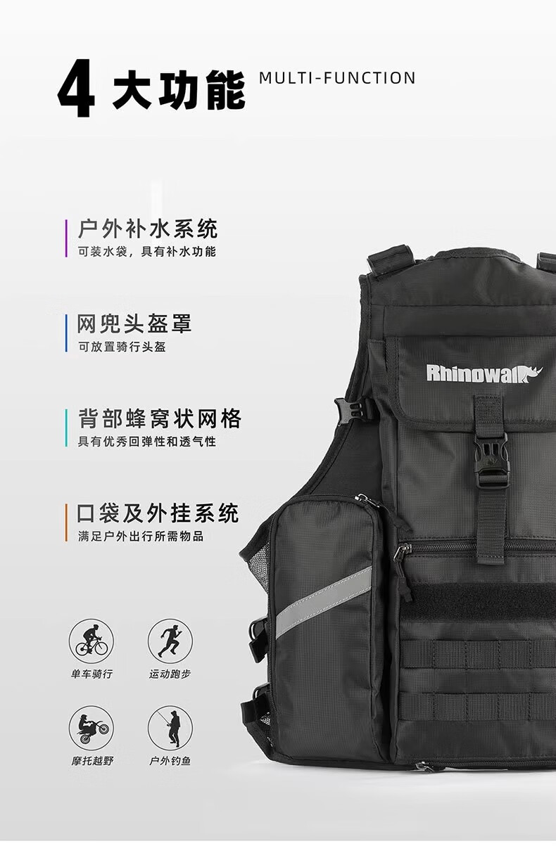 Rhinowalk Rhino Sports Vest Cycling Suit Can Hold Helmet Multi-Pocket Fishing Vest Motorcycle Reflective Outdoor Bicycle Water Bag 3.0L