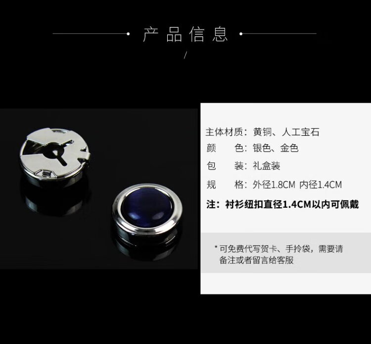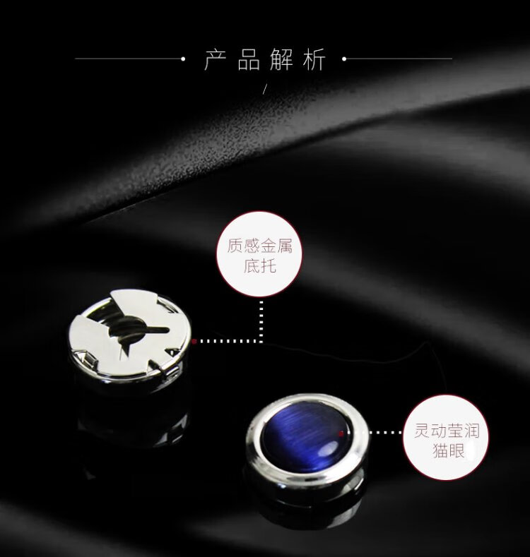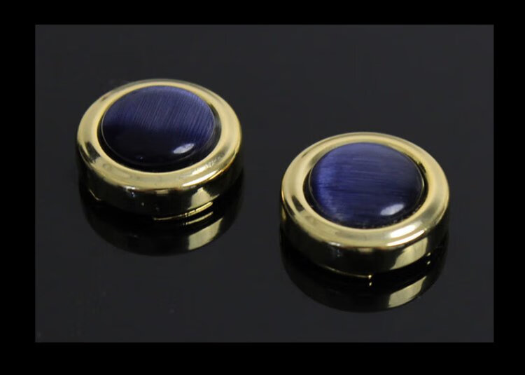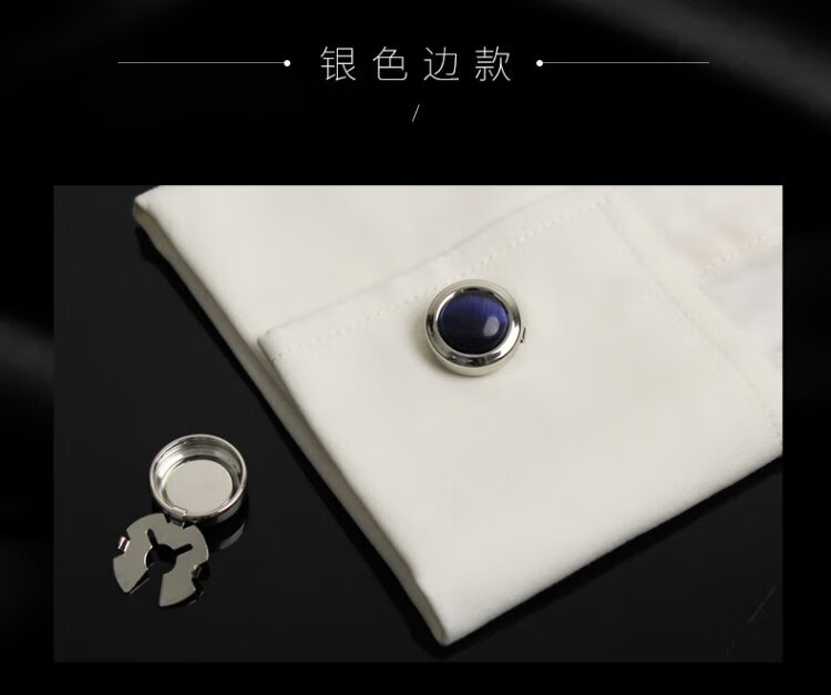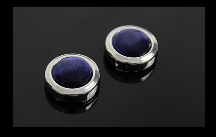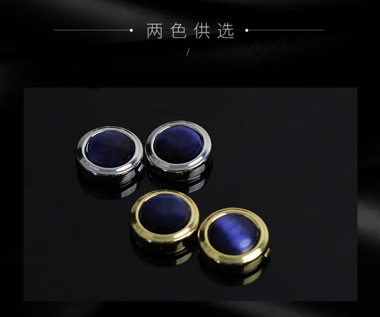 T&Twenties simple no-punch cufflinks men's suit shirt buttons French men's suit shirt cuffs decorative buttons women's cuff pins KT001 deep sea blue cat's eye stone & silver trim 1 pair
