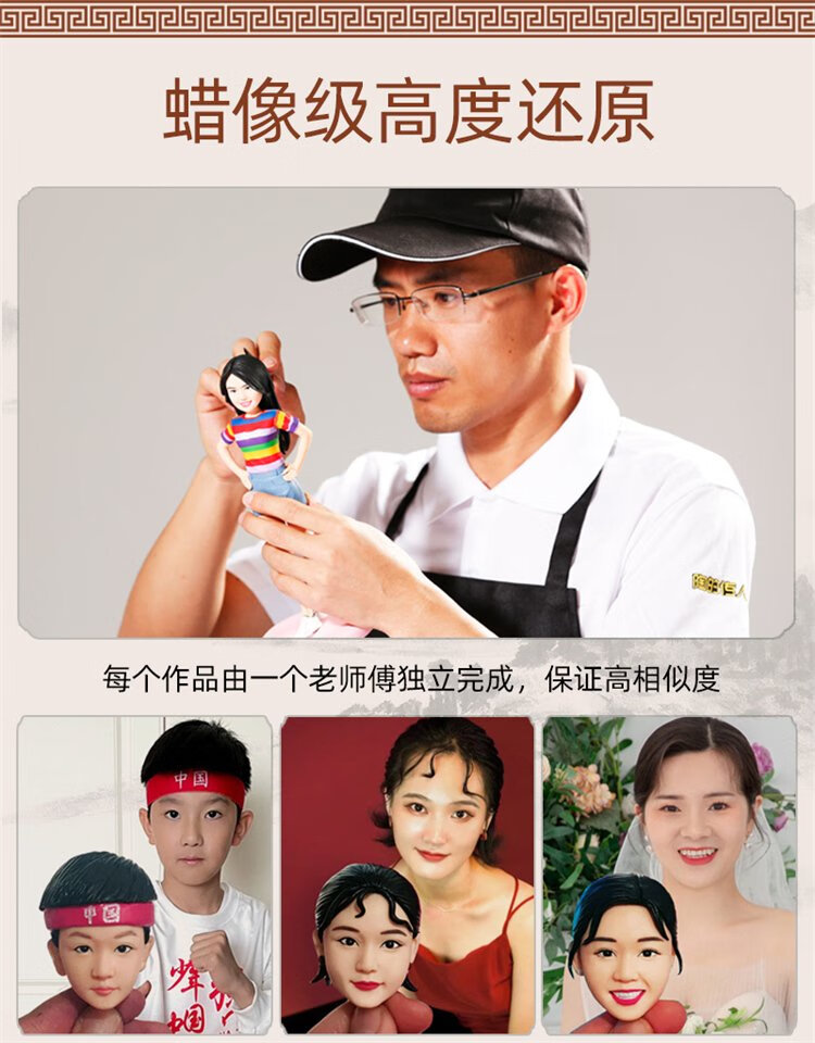 Descendants of Tao Soft Clay Doll AI Photo Customized Clay Figure Real-life Doll 3D Portrait Sculpture Doll Character Hand Figure Wedding Gift Recommended 22cm Single Person Made by a 12-Year-Old Master