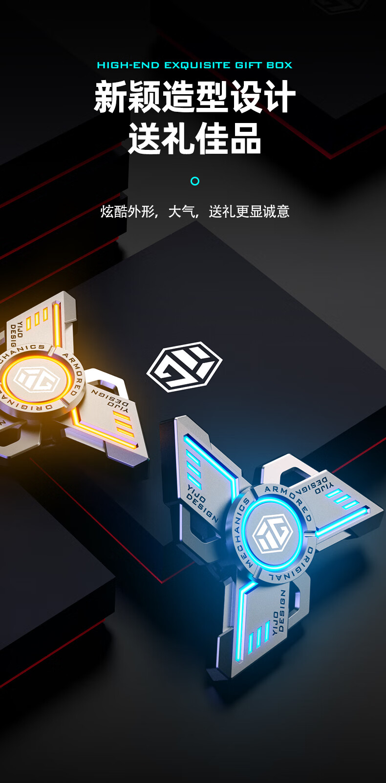 Black technology fingertip gyroscope alloy cool finger decompression and decompression artifact metal finger student toy gift Dark Knight Lava Orange Simple version